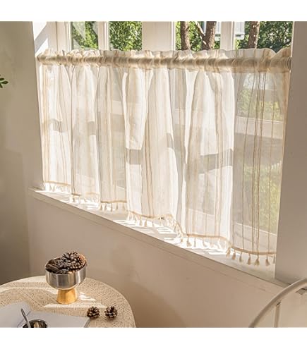Les mesures étant prises à la main, les tailles indiquées peuvent varier de 3 à 5 cm. Lot de 2 Rideaux Occultants Kerry 135x240cm Lin Passe au sèche-linge. Lot Rideaux Déco Géométrique Beydodo Lot De 2 Rideaux Brise-bise Courts - Style Maison De Style Campagne Motif Géométrique ✨Rideau de cuisine 90 x 45 cm ✨ Dimensions : 90 x 45 cm (largeur x hauteur pour 1 pièce), lot de 2 par paquet. La tête de rideau a un passe-tringle d'un diamètre intérieur de 9 cm, qui est facile à installer et peut être insérée directement dans une tringle à rideau standard. NSXIN Lot de 2 rideaux brise-bise sei-transparents - Pour bistrot... Les plis sur les rideaux peuvent être repassés par repassage ou vapeur. Donnez à n'importe quelle pièce un look doux, frais et nouveau. Rideaux beiges de style champêtre, salon, rideaux aspect lin - 2 pièces... Texture douce et lisse, aspect esthétique et chic, s'adapte facilement à votre décoration intérieure existante. Veuillez noter que ces rideaux sont plus courts (rideaux de cuisine). Ils ne sont pas transparents pendant la journée et seules des ombres douces sont visibles la nuit lorsque vous les regardez de près. Nombreuses utilisations possibles : Le rideau court au style élégant et doux au toucher est adapté pour la cuisine, le salon, la salle de bain, le café et la buanderie. Ne pas utiliser d'eau de Javel.