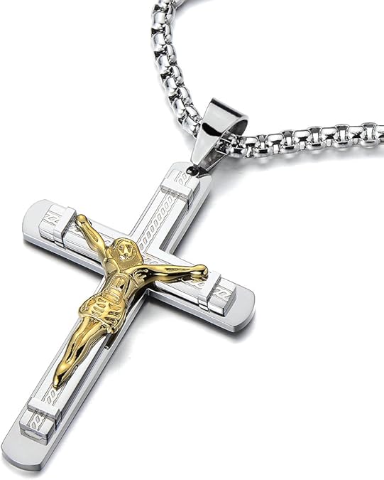 Collier croix crucifix Jésus Christ Plaqué OR 750 3 microns BELLE COMME... Matériaux haut de gamme Le collier à breloques croix de Jésus catholique Classique est totalement doux pour la peau et hypoallergénique. ✦COLLIER CROIX DE JÉSUS-CHRIST CATHOLIQUE POUR HOMMES✦ Avec le pendentif crucifix en croix de roche, le collier crucifix médiéval de Jésus peut incroyablement renforcer votre confiance et montrer grandement votre personnalité qui se défend dans toutes les situations. Ce collier crucifix croix chrétienne Hip Hop vous permet de marcher à la pointe de la mode. ✦MATÉRIAUX DE QUALITÉ SUPÉRIEURE✦ Acier inoxydable. Nous nous efforçons d'offrir à nos clients l'expérience d'achat la plus agréable grâce à notre service professionnel. ✦BIJOUX CROIX CRUCIFIX MÉDIÉVALE CADEAU POUR HOMMES✦ Surprenez vos garçons, pères et amis avec notre collier punk chrétien catholique Jésus à Pâques, Noël, Halloween, la Saint-Valentin, Thanksgiving et d'autres moments ou occasions spéciales. Collier Pendentif Crucifix Croix, Collier Croix en Acier Inoxydable, Or Crucifix Cadeau église 24 pouces de long, pendentif: 1,8 pouces * 3,9 pouces, environ 34 g. Design impressionnant Punk et masculin, le collier amulette religieuse crucifix en croix peut incarner fortement votre charme personnel et ajouter une touche de glamour à votre look quotidien. Cadeau Homme Croix Chrétienne Rétro Bijoux Crucifix Jésus Christ Pour Hommes, Couleur Or, Pendentif Croix En Acier Inoxydable Avec Bible Catholique Le collier rétro avec croix du Christ Jésus est de haute qualité et résiste à l'usure. Cadeaux bijoux pour hommes Surprenez vos garçons, pères et amis avec notre collier crucifix avec croix chrétienne Hip Hop à Pâques, Noël, Halloween, la Saint-Valentin, Thanksgiving et d'autres moments ou occasions spéciales. Avec le pendentif crucifix croix de roche, le collier crucifix médiéval de Jésus peut incroyablement renforcer votre confiance en vous et montrer grandement que votre personnalité se défend dans toutes les situations. Croix Crucifix lourde pendentif collier hommes or acier inoxydable mâle... ✦CONCEPTION IMPRESSIONNANTE✦ Notre collier amulette religieuse crucifix en croix est l'équilibre parfait entre classique et modernité. Longueur de la chaîne : 24 pouces., Pendentif: 1,8 pouces * 3,9 pouces., Environ 34g. Nous accordons toujours la priorité à nos clients et fournissons une expérience ultime ainsi que des services professionnels. Punk et masculin, le collier gothique avec pendentif croix de Jésus peut incarner fortement votre charme personnel et ajouter une touche de glamour à votre look quotidien. Idéal pour tous les âges et toutes les occasions, le cadeau de bijoux crucifix en croix viking pour garçons peut vous aider à faire une silhouette splendide à n'importe quelle fête. ✦OPTION RÉCONFORTANTE✦ N'hésitez pas si vous aimez notre cadeau de bijoux à breloques crucifix chrétien catholique Jésus pour garçons.