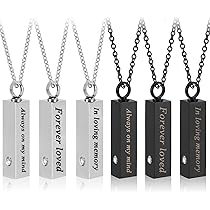 Collier Souvenir Cendres Bijoux De Crémation Pour Cendres Pour Femmes Et Hommes - Collier Urne Cylindrique En Acier Inoxydable - Pendentif Commémoratif Pour Animal Domestique, Acier Inoxydable, Pas De Gemme Bijou Souvenir Crémation Bijoux de crémation personnalisés pendentif urne de cendres - collier balle souvenir funéraire - or rose et argent couleurs disponibles - France URNE ACIER INOXYDABLE Commémorative Pour Petites Urnes Cendres Chiens... Matériau :- Acier inoxydable- Avec outil entonnoir- Le pendentif a une longue durée de vie et ne nécessite aucun entretien particulier. 【SÛR】 Collier de cendres fait à la main, pendentif et chaîne en acier inoxydable de qualité 316L, très durable. L'intérieur du pendentif est vide et peut contenir une petite quantité de cendres, de fleurs séchées, de parfum, d'huiles essentielles, de messages spéciaux, d'une mèche de cheveux, d'argile ou de sable, il peut rapprocher votre bien-aimé de votre cœur et est un extraordinaire façon de se souvenir d'un être cher. Concept de la marque :Nos bijoux sont toujours extraordinairement sophistiqués et inspirants, tout comme l'amour blanc sans défaut. 【Cadeau parfait】 Emballé dans une boîte cadeau et une pochette. Facile à assortir avec n'importe quelle tenue que vous souhaitez porter au quotidien. 【Garantie après-vente à 100%】 Que vous soyez notre client ou non, nous vous fournirons un excellent service ! L'intérieur du pendentif est vide et peut contenir une petite quantité de cendres, de fleurs séchées, de parfum, d'huiles essentielles, de messages spéciaux, d...