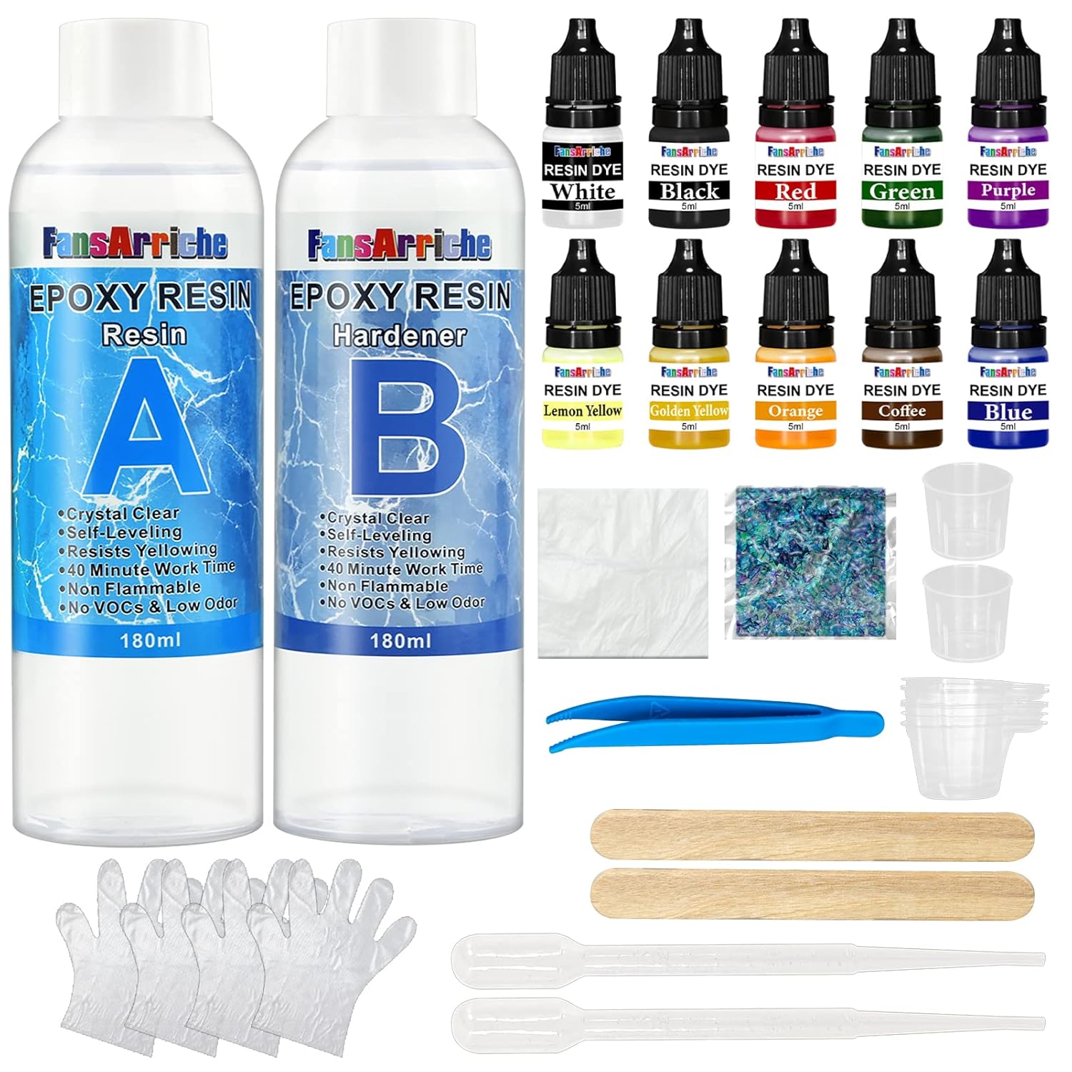Une fois durci, la résine présente une clarté remarquable, ce qui est crucial pour des applications telles que la fabrication de bijoux et les œuvres d’art. Les débutants peuvent faire une petite quantité d'essai avant de travailler. Mélangez avec un bâton lentement, soigneusement et minutieusement pour éviter les bulles, vous pouvez également utiliser un pistolet thermique pour réduire les bulles. ✅【Crystal Clear & High Gloss】: notre résine époxy est sa finition cristalline. Cette résine époxy claire peut parfaitement éliminer les rampants, les fisheyes et les nids de poule pour produire votre travail parfait ! Le kit comprend 100 gr de résine, 60 gr de durcisseur, 1 paire de gants, et un mode d'emploi avec tous les conseils utiles pour un résultat parfait. [QUALITÉ... ✅【Applications larges】: nos kits de résine époxy et de résine de coulée est idéal pour une variété de projets artisanaux, tels que les sous-verres, le comptoir, l’artisanat, les bijoux, les peintures etc. Si vous avez des questions, s'il vous plaît directement tell us, vous donnera un résultat satisfait ! Kit de résine époxy parfait pour les débutants et les professionnels: Notre kit d'accessoires de résine époxy contient : 600ml de résine, 600ml de durcisseur, 2 gobelets gradués (100ml), 2 bâtons de mélange, une paire de gants, Notre kit de résine de rapport de mélange1:1 est la meilleure résine recommandée par les artisans professionnels. Résine Auto-nivelante Sans Bulle Résine Pour Bijoux Kit Résine Époxy 1300ml Shiiyyu - Résine Transparente 1:1 Pour Moulage, Bijoux Et Tables Résine Artisanale 1:1 Revêtement époxy Table Transparent Large application : Idéal pour le moulage, le revêtement et les projets artistiques. Largement utilisé dans l'artisanat de bricolage, les bijoux, les bougeoirs, les gobelets, les lampes, les dessus de table, les revêtements, les plateaux, les dessus de bar, les moulages, les boiseries, les ornements, les sous-verres et autres œuvres d'art... Bien que certaines bulles puissent encore apparaître, elles peuvent généralement être éliminées avec la chaleur légère d’une torche ou d’un pistolet à chaleur, assurant un produit final sans faille 40 minutes de temps de travail il peut durcir le démoulage d’ici 8 heures Il peut résister à la chaleur, rayures et garder clair sans jaunissement, protégeant vos belles œuvres d’art et couleurs pour stable et durable Son adaptabilité en fait un choix idéal pour les amateurs et les professionnels. Résine Epoxy Transparente 2 parties 1000 ml, 1: 1 Ratio Revêtement en La propriété d’auto-nivellement permet une application en douceur, minimisant le besoin de travaux de finition étendus. Largement utilisé dans l'artisanat de bricolage, les bijoux, les bougeoirs, les gobelets, les lampes, les dessus de table, les revêtements, les plateaux, les dessus de bar, les moulages, les boiseries, les ornements, les sous-verres et autres œuvres d'art en résine. Dur Comme Du Rock - formule auto-nivelante et résistante à la brillance, durcit de manière cristalline et dure comme une roche, anti-rayures, auto-dégazante et inodore Les propriétés anti-jaunissement créent de belles illustrations et une stabilité des couleurs pour une qualité héritage. Large application : Idéal pour le moulage, le revêtement et les projets artistiques.