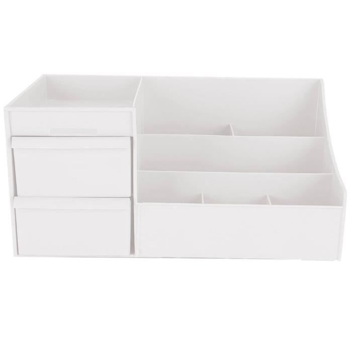 Avec sa structure à tiroirs et son design multifonctionnel, il vous permet de ranger facilement vos cosmétiques et de répondre à vos besoins en maquillage. DancesCat Rangeent aquillage et 2 Tiroirs, Grande Capacité... Boîte de rangement pour cosmétiques de bureau. - Taille compacte, ne prend pas trop de place lors de l'utilisation du support de rangement pour cosmétiques. Boîte Rangement Salle De Bain Organisateur Maquillage Blanc - Rangement Produit De Beauté Organisateur De Bureau Bois Étagère de rangement pour cosmétiques de bureau. - Présente une conception multifonctionnelle, il dispose d'un miroir, d'un porte-mouchoirs, qui peut grandement répondre à vos besoins de maquillage. Vous cherchez un organiseur de bureau pratique pour vos cosmétiques ? Envie d'un bureau propre et ordonné ? Cette boîte de rangement multifonction est faite pour vous. Étagère de rangement multifonctionnelle - elle est livrée avec la structure du tiroir, très pratique pour ranger vos cosmétiques, conteneur de cosmétiques Organisateur de cosmétiques de bureau - une nécessité pour votre maison, il est temps d'oublier le sur votre bureau, conteneur de bureau domestique Conteneur de bureau ménager. Description des marchandises Organiseur de bureau multifonction pour cosmétiques. Organisateur De Maquillage, Organisateur De Pinceaux Pivotant À 360... - Il est livré avec la structure du tiroir, très pratique pour ranger vos cosmétiques. Conteneur de stockage de cosmétiques de bureau - structure multicouche, offre plus d'espace de stockage pour vous, support de stockage de cosmétiques Rangement meuble maquillage – Trouvez le meilleur prix