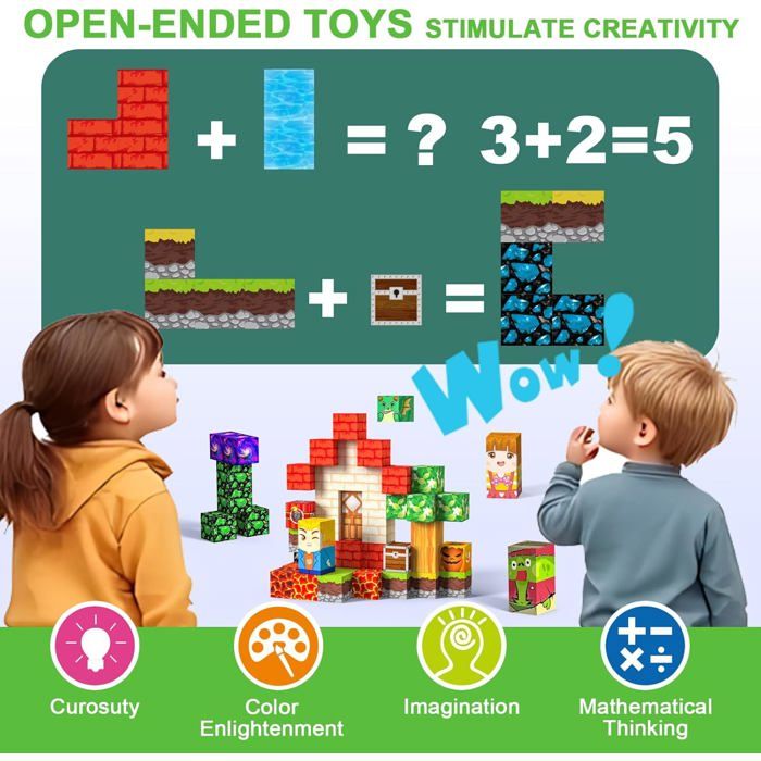 Il permet véritablement aux enfants de grandir en jouant et d'acquérir des connaissances par l'exploration ! Durables, résistants à l'eau et faciles à nettoyer, les blocs sont dotés d'aimants puissants qui s'assemblent solidement sans se desserrer, garantissant ainsi des constructions créatives stables. Le cadeau idéal : Ces magnetic building blocks sont le cadeau parfait pour les garçons comme pour les filles ! Quand le plaisir rencontre l'apprentissage : Les jeux de construction magnétique aux couleurs vives captent instantanément l'attention des enfants. Jeu de construction magnétique enfant - SWAPY - 220 pièces - 2 cm - Blocs magnétiques - 3+ ans - 54 couleurs - Jeux - Jouets Matériaux de qualité supérieure : Chaque bloc magnetique enfant est fabriqué à partir de matériaux de haute qualité avec une finition lisse et sans bavures. Créez des constructions magnétiques sur mesure sur les tables ou les portes de réfrigérateur, et laissez la créativité s'épanouir dans tous les coins de la maison. DoeDoefong 64 Pièces Bloc Construction Magnétique Enfant, Ensemble... Présentés dans un emballage élégant, ils constituent une délicieuse surprise pour les occasions spéciales telles que Noël, les anniversaires ou la fête des enfants. Une créativité sans limites : Jeu de construction magnétique avec des éléments tels que des flocons de neige, des bonhommes de neige, des rennes, des princesses, des chevaliers et des châteaux, ces blocs magnétiques stimulent l'imagination des enfants et leur permettent d'exprimer librement leurs talents de constructeurs. Cela offre aux enfants une expérience créative fiable et captivante. Jouet éducatif Aimants Enfants Bloc De Construction Magnétique - 108 Pièces - Pour Enfant Plus De 3 Blocs Aimantés COOLJOY Jeux de Construction | 40 Pièces Construction Magnetique En... Leurs thèmes captivants et leurs options de jeu polyvalentes captivent instantanément l'attention des enfants.