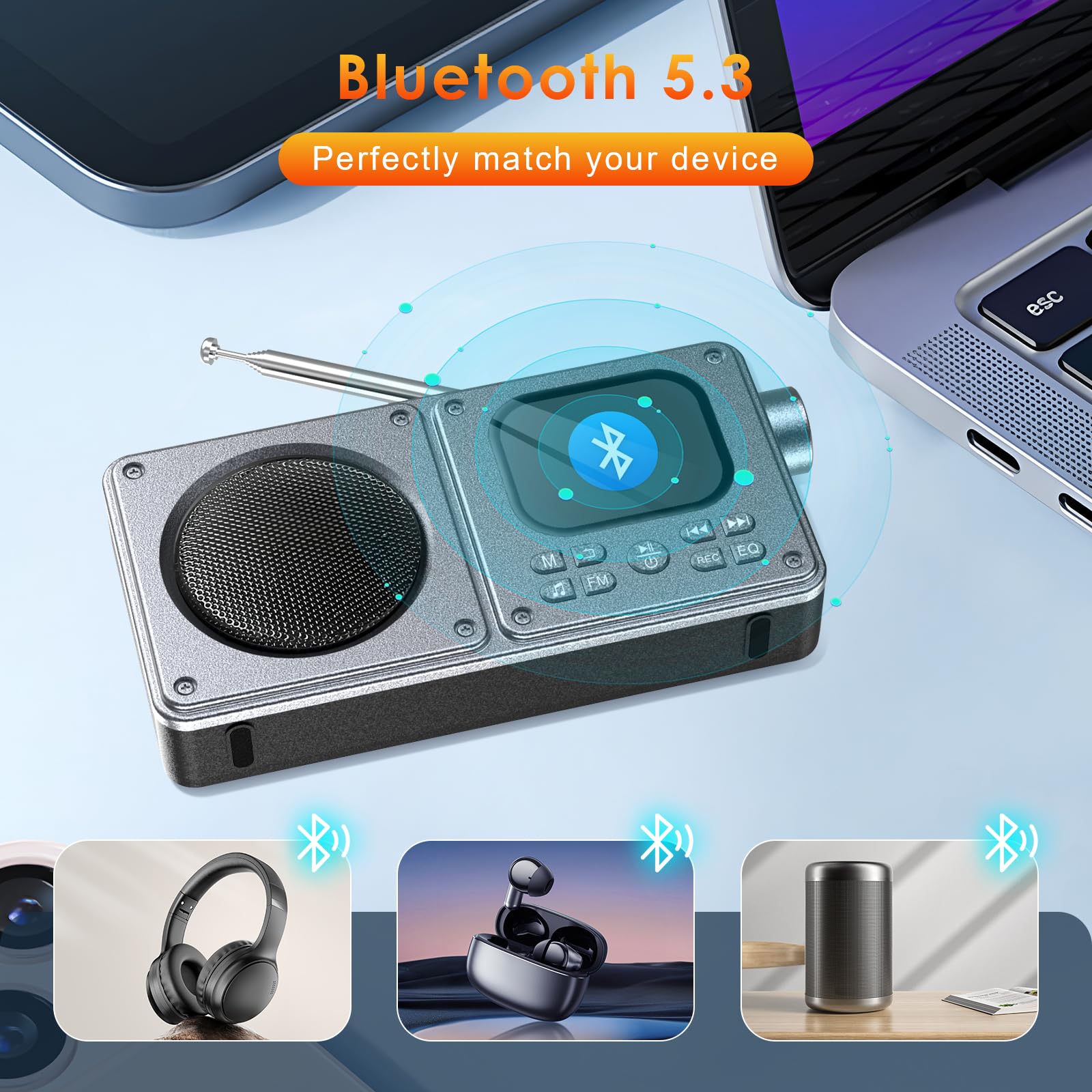 Bibliothèque musicale portable pour un plaisir audio sans fin. Gueray Lecteur CD de Bureau avec Bluetooth Lecteur CD ural Haut... 【Design Radio Rétro avec Antenne Télescopique】 Esthétique vintage alliée à la technologie moderne - l'antenne intégrée améliore la réception FM tout en ajoutant du charme. Formats supportés : Audio : MP3/FLAC/WAV/APE, Enregistrement : WAV, Images : JPG/JPEG/BMP. Lecteur Musique Portable Autonomie 8h Gueray Lecteur DVD CD Bluetooth Avec Haut-parleur Prise En Charge De La Lecteur Mp3 Bluetooth 5.3 Diffusez vos playlists sur écouteurs ou enceintes Bluetooth sans fil. Spécifications Produit : Dimensions : 139., 5*66*30mm Écran : 2., 01 pouces Résolution : 240*296 Formats Audio : MP3/WAV/APE/FLAC Format Enregistrement : WAV Formats Image : JPG/JPEG/BMP Capacité Batterie : 1000mAh Poids Net : 189g Sortie Audio : 3., 5mm Connexion : USB Type-C 2., 0 Découvrez l'essence de la portabilité musicale avec le lecteur MP3 Gueray. Extension par carte TF (jusqu'à 128GB)., 【Technologie Bluetooth 5., 3】 Connexion stable et sans interférence grâce au Bluetooth 5., 3., Transmission plus rapide, signal plus stable pour une lecture fluide. Parfait comme pièce décorative ou élément de conversation ! Compagnon idéal pour voyages et trajets. Jouez vos morceaux préférés, enregistrez des moments ou lisez des livres avec ce compagnon audio complet. Aucun WiFi/abonnement requis. Formats supportés : Audio : MP3/FLAC/WAV/APE, Enregistrement : WAV, Images : JPG/JPEG/BMP. Aucun WiFi/abonnement requis. Bibliothèque musicale portable pour un... Que vous fassiez du sport, voyagiez ou vous détendiez, ce lecteur élève votre expérience d'écoute. Cadeau parfait pour mélomanes, enfants et familles. MP3 Bluetooth 4.0 8Go Lecteur Musique Sport Portable avec Podomètre