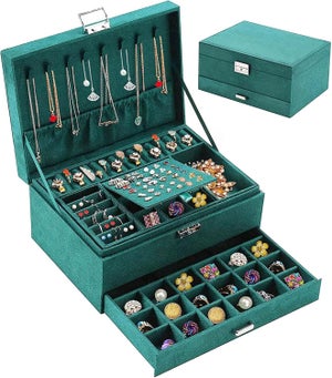Coffret Rangement Bijoux Boîte À Avec Miroir, 2 Niveaux Organisateur À Bijoux, Oublure En Velours Boite A Bijoux Femme Boîte à Bijoux, Coffre à Bijoux, Boite a Bijoux Fee Fille, Boîte à bijoux en velours avec 2... Boîte À Bijoux En Velours Noir Avec Couvercle En Verre – Boîte À Bijoux Avec Couvercle En Verre Son design intemporel avec couvercle en verre et finition satinée ajoute une touche raffinée à tout espace. OrderlyGo Grande boîte à bijoux avec 3 niveaux - Couvercle transparent - Doublure en velours ... Organisateur de bijoux pour boucles d'oreilles, colliers... 【Cadeau idéal pour les amateurs de bijoux】 Ce coffret à bijoux haut de gamme est le cadeau parfait pour les occasions spéciales - présenté dans une élégante boîte cadeau, prêt à être offert à vos proches. Le couvercle transparent permet un accès rapide. 【Système d'organisation intelligent】 En tant qu'organisateur à bijoux pratique, cette boîte dispose de supports dédiés pour bracelets, des tiges rembourrées pour bagues et des séparateurs amovibles pour un ajustement personnalisé. 【Design spacieux à 3 niveaux】 Ce grand coffret à bijoux offre un rangement intelligent avec 3 étages et 24 compartiments pour boucles d'oreilles, colliers, bracelets et plus.
