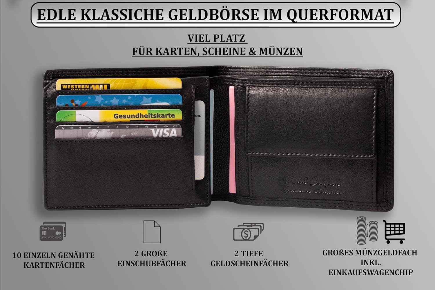 Notre top 10 des Matador Portefeuille Homme au France Les composants haut de gamme du Portefeuille Homme Fermeture Éclair vous permettent de ressentir la différence dans notre maison. Porte Carte Femme MATADOR #Toronto Portefeuille En Cuir Pour Homme Avec Boîte Cadeau élégante, Protection RFID, Luxe, Marron Foncé Portefeuille Luxe Boîte Cadeau Pièces Uniques Faites à La Main : Les Portemonnaie Pour Homme de MATADOR sont fabriqués avec amour, expertise et précision. Portefeuille en cuir véritable fait à la main pour homme et femme en cuir brut chromé gratuit – Chaque portefeuille est unique 10 compartiments pour cartes cousues individuellement - 1 compartiment format A7 comme fenêtre de visualisation - 1 compartiment pour monnaie avec fermeture à bouton-pression - 1 compartiment pour la jeton de panier Ce Portefeuille Homme Fermeture Eclair offre un format compact avec protection RFID intégrée et de nombreux compartiments pour cartes et billets. Pratique et... Portefeuille RFID certifié TÜV : Ce Porte Monnaie Homme Zippé est conçu avec une protection RFID intégrée et testée, garantissant une sécurité optimale contre le vol de données. Une organisation élégante : Ce Portefeuille Homme Fermeture Éclair offre une répartition bien pensée avec une organisation pratique. Idée cadeau exclusive pour homme et femme: Ce Porte Feuille Homme est le cadeau parfait pour toutes les occasions: Noël, Saint-Valentin, Pâques, fête des pères, fête des mères, anniversaire, mariage ou anniversaire de couple. Pratique et chic, le Porte Monnaie Pour Homme est le choix parfait pour allier sécurité et style au quotidien. 9 emplacements pour cartes, 6 poches de grande taille, 2 compartiments à billets profonds et un compartiment à pièces spacieux en cuir véritable. Description du produit Découvrez de MATADOR #CORDOUE le Portefeuille Homme, un accessoire élégant en cuir véritable au style Porte Feuille Homme raffiné, présenté dans une jolie boîte cadeau.