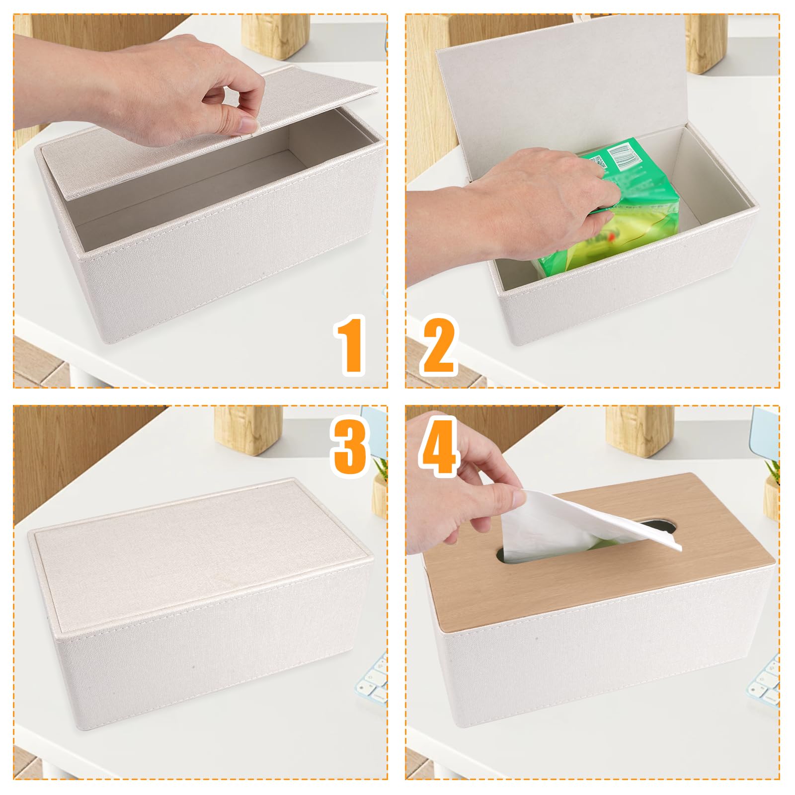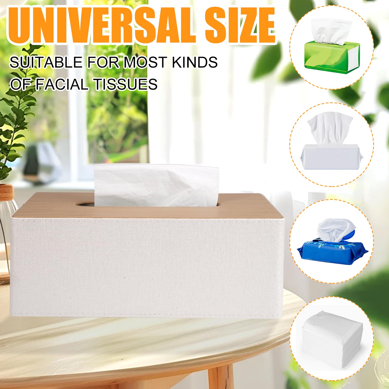 Spécifications : 1 * Rectangulaire Boîte De Mouchoirs en Papier Matériau : Cuir PU + panneau de fibres à haute densité Dimensions : 25 x 14 x 10,4 cm Plage d'application : Convient à la plupart des tailles de tissus Couleur : couleur bois naturel Instructions d'utilisation : Il suffit de placer les mouchoirs dans la boîte et de les retirer facilement par le haut. Ouverture magnétique : Magnétique Distributeur Mouchoir est dotée d'une ouverture magnétique sur le fond, ce qui facilite le remplacement des mouchoirs. Mode et résistance aux taches : la surface en cuir PU imperméable de la Boîte à Mouchoirs en Cuir Moderne est facile à nettoyer. ⑤ Application polyvalente : Support de boîte à mouchoirs en Cuir PU n'est pas seulement idéale pour la maison, mais aussi pour les bureaux, les hôtels et d'autres lieux, ce qui en fait un cadeau idéal. Boîte À Mouchoirs En Cuir Pu Distributeurs De Mouchoirs De Papier L'intérieur de la Support de boîte de Distributeur de mouchoirs en Papier pour décor est doux, finement travaillé, robuste et durable ④ Taille parfaite : Boîte à Mouchoirs s'adapte à la plupart des formats de mouchoirs courants sur le marché, et peut contenir des mouchoirs en papier, des mouchoirs en papier, des lingettes humides et des mouchoirs en papier à usage cosmétique. Porte-Boîte À Mouchoirs En Cuir Pu Étui À Mouchoirs Serviette Papiers... Porte-Boîte Couverture Cas Serviette est également un excellent cadeau pour les occasions spéciales telles que les anniversaires et les fêtes, alliant praticité et beauté ② Simple et élégant : Le style moderne de la Boîte à mouchoirs rectangulaire en Cuir PU s'adapte à différents décors de maison et de bureau, améliorant l'esthétique de n'importe quel espace. Le couvercle inférieur de la Housse pour boîte à mouchoirs reste solidement fixé sans se desserrer, et aucun démontage n'est nécessaire, ce qui rend l'opération pratique Boîte Rangement Mouchoirs Magnétique Boîte De Mouchoir En Cuir Pu, Distributeur De Mouchoir Carré, Boîte De Rangement De Bureau En Rouleau Boite De Papier Salon Maison Boite A Serviettes 97081457 Boite De Mouchoirs En Papier Boîte À Mouchoirs Rectangulaire En Cuir Pu Avec Télécommande - Boîte De... Distributeur Mouchoir s'adapte à différents styles de décoration intérieure et convient parfaitement à la salle de bains, à la chambre à coucher, au salon, au bureau, au meuble-lavabo, à la table à manger et à bien d'autres choses encore