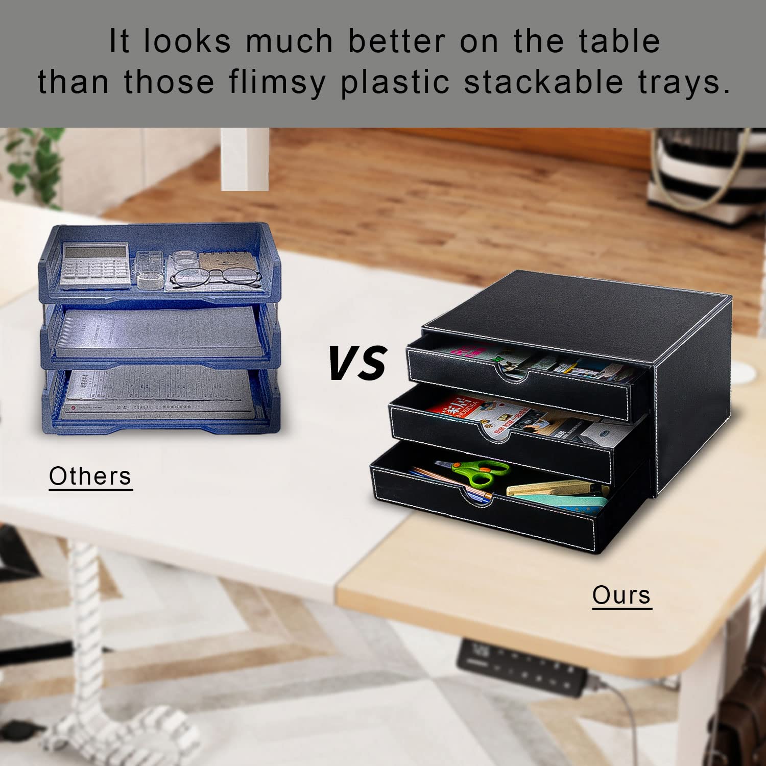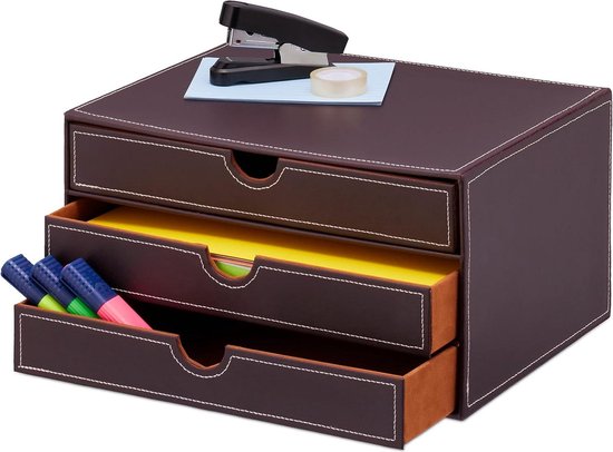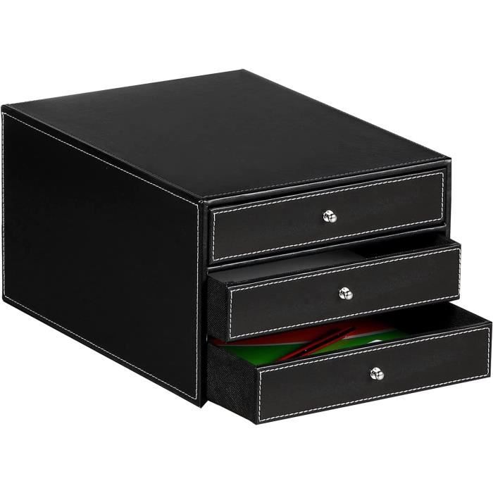 Caisson De Bureau Meuble De Rangement Avec 3 Tiroirs Pour Lettredossiers Et Documents Noir La finition soignée avec des coutures propres rend la boîte de rangement résistante à la poussière, à l'humidité et durable – esthétique comme neuve Boîte Rangement Documents A4 Noir Boîte De Rangement De Bureau D'Office 1PC Simple Ecrivez Des Stylos De Boîte Tiroirs Bureau élégante Design de tiroir élégant et pratique : ce tiroir de bureau avec 3 tiroirs en cuir synthétique de qualité supérieure en noir classique convainc par son design élégant. Porte-docuents pour rangeent/présentation/conférence - cuir... Armoire élégante et durable] : fabriqué en panneau de densité épais recouvert de cuir synthétique de haute qualité, et doublure en flanelle sélectionnée... Une solution intelligente pour différents types d'organisation, du matériel de travail aux besoins quotidiens Contrairement aux solutions de rangement en métal ou en plastique, cette boîte de bureau en cuir ajoute une ambiance élégante et moderne à n'importe quel espace de travail Cette boîte de rangement de bureau garde tout bien rangé et à portée de main, que ce soit dans la vie professionnelle ou pour une utilisation quotidienne Utilisation : rangement de bureau Dimensions : 33 x 25 x 18,5 cm., Couleur : noir. Organiseur de bureau polyvalent pour le bureau et la maison : que ce soit comme porte-lettres, porte-documents A4 ou tiroir à cosmétiques, cette boîte de rangement est idéale pour un rangement structuré au bureau, à domicile ou dans le salon. Nom du produit : organiseur de bureau avec 3 tiroirs Matériau : polyuréthane.