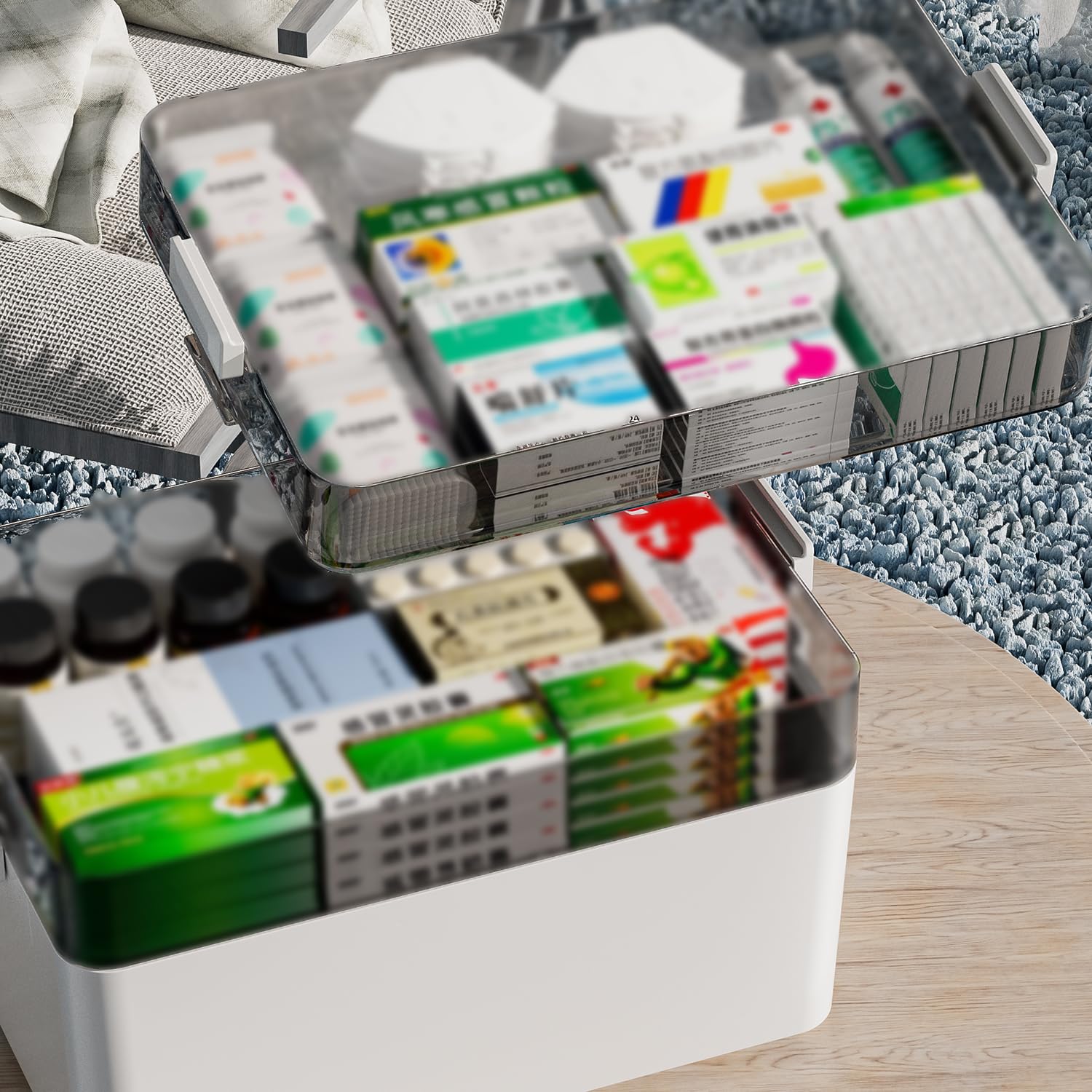 Pharmacie Rangement Pharmaci Sertay Boîte De Rangement Et Transport, Grande Capacité, 3 Niveaux, Pour Stocker Des Médicaments, Cosmétiques, Outils Coffret Rangement Médicaments 3 Niveaux Gemsaya Boîte à médicaments à 3 étagères avec poignée - Grande boîte à pharmacie en plastique avec couvercle - Verrouillable - Pour la maison, le bureau, l'extérieur - Bleu L'organisateur de pilules mensuel 31 jours 3 fois par jour est conçu pour une gestion des médicaments et une commodité quotidienne. Ce distributeur de pilules... Poids : Contenu : 1 boîte à médicaments. Matériau robuste : les médicaments sont fabriqués en plastique renforcé de qualité alimentaire, sans danger pour la santé et sûrs à utiliser. Capacité et taille : la boîte de rangement pour médicaments a une taille de 34 × 22 × 24,5 cm et, grâce à sa grande capacité, elle offre de la place pour des objets de toutes formes et est facilement accessible. Que ce soit comme boîte à médicaments ou pour ranger divers autres objets, c'est une solution de rangement polyvalente et efficace. La fermeture robuste maintient les objets en place en toute sécurité et empêche les petits objets de tomber pendant le transport. Facile à transporter : la boîte de rangement pour médicaments dispose d'une poignée pratique, ce qui vous permet de la transporter facilement à la maison et en déplacement, ce qui rend votre voyage plus pratique. Plusieurs niveaux de rangement : la boîte de rangement pour médicaments dispose de trois niveaux de rangement séparés qui vous aident à trier vos médicaments, ce qui vous permet de les trouver rapidement et facilement si nécessaire. Boîte de rangement de 1,6 l avec 3 niveaux de morceaux de viande...