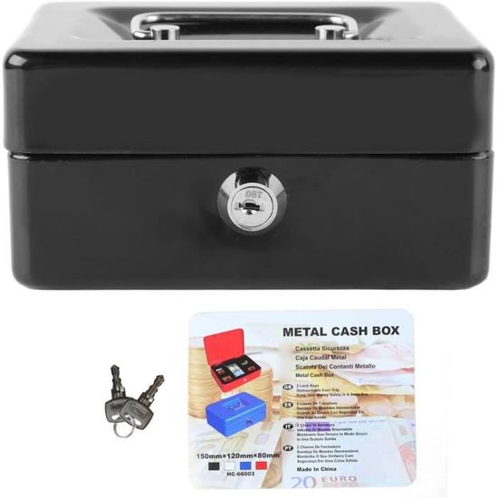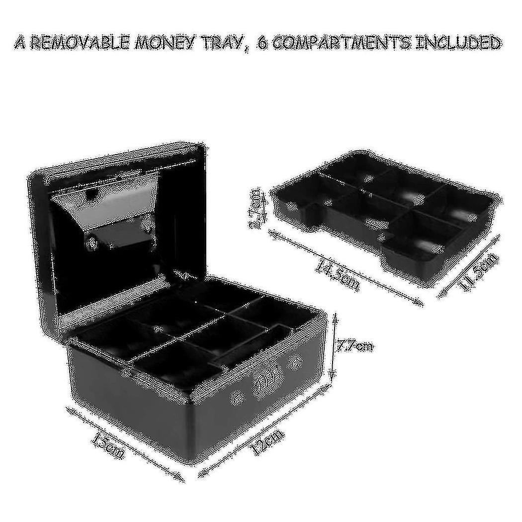 Boîte à Monnaie Verrouillable Métal Boîte De Sécurité, Caisse à Onnaie Avec Plateau Et Serrure à Double Caisse Monnaie Transportable Poignée Petite Boîte Métallique Portable,Avec Couvercle,Boîtes De Rangement En Métal,Pour Bijoux,Candy BoîTe à Monnaie en MéTal Durable avec Plateau de Rangement Verrouillable - Petite BoîTe à Monnaie avec Serrure à Combinaison 15 X 12 X 7,7 Cm (Noir... Contenu de l'emballage : 1 boîte en métal Dimensions extérieures : 15 x 12 x 7,7 cm, dimensions intérieures : 14,5 x 11,5 x 4,5 cm. Serrure à combinaison de sécurité améliorée : la boîte à monnaie à combinaison est verrouillée par un code de sécurité (serrure à combinaison à 3 chiffres), vous n'avez pas à vous soucier de perdre des clés. Quystetes Remarque : Il n'est pas recommandé d'utiliser un simple mot de passe, sinon il pourrait facilement être cassé. Incassable : la boîte à monnaie est fabriquée en métal solide, incassable sans mot de passe. Le plateau en plastique amovible est également robuste, il peut contenir de l'argent, des pièces de monnaie, des clés ou des chèques. La poignée est assez robuste pour être transportée n'importe où. Le plateau en plastique amovible est également robuste, il peut contenir de l'argent, des pièces de monnaie, des clés ou des chèques. La poignée durable est suffisamment solide pour être transportée n'importe où. Le plateau en plastique amovible est également robuste, il...