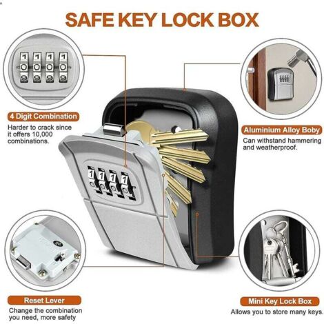 KEENSO boîte à serrure Boîte à clé Murale, Coffre-fort à clé avec Boîte... Cette boîte à clés permet aux utilisateurs autorisés d'accéder facilement aux clés, tout en minimisant le risque de perte ou de vol. Elle est idéale pour un usage domestique, professionnel ou scolaire Boite à Clé Sécurisée Boîte De Verrouillage à Clé Murale, Boîte De Verrouillage à Combinaison à 4 Chifes, Cache-clé Extérieur étanche Pour Clé De Gestionnaire De Maison, Réinitialisable, Sécurité Sûre Boite A Cle Boite A Clefs Murale Boîte À Clé Sécurisée Etanche Extérieur Avec Code