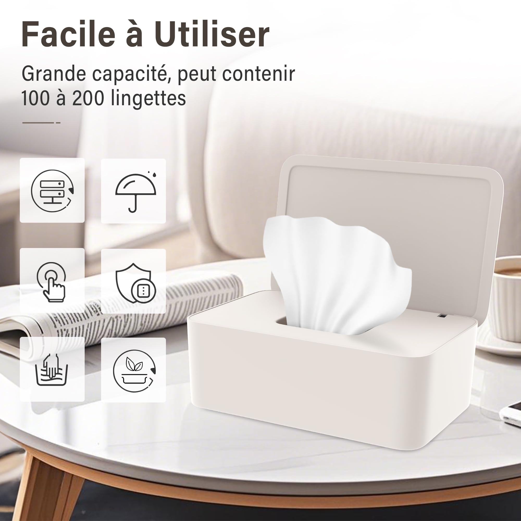 Rangement Réutilisable Maison Bureau Boîte À Lingettes Humides Boîtes Lingettes Boîtes De Papier Toilette Boîtes De Toilette Boîte Lingettes Humides Matériau superbe : la boîte distributrice de lingettes humides est fabriquée en polypropylène de haute qualité, avec une surface lisse et des bords sans bavures, réutilisable, anti-poussière, imperméable, robuste, pas facile à casser, facile à nettoyer, avec une durabilité et une stabilité durables.Étanchéité solide : la boîte distributrice de lingettes humides est équipée d... Porte-Papier Toilette Avec Boîte À Lingettes Humides, Acier Inoxydable Sus 304 Noir Porte Il suffit de couvrir le couvercle après chaque utilisation pour vous assurer que les serviettes en papier ne sèchent pas et restent toujours dans leur meilleur état. Matériau de Haute Qualité]: Boite a lingettes humides est fabriqué en matériau PP de haute qualité, le sac à lingettes mouillées est fabriqué en matériau... Utilisation multi-scénarios: la boîte de rangement de lingettes humides peut être utilisée dans le salon, la chambre, la salle de bain, la buanderie, la cuisine, le bureau, la voiture et d'autres zones. Facile à transporter: la boîte à lingettes humides est de taille moyenne, offrant suffisamment d'espace pour les lingettes humides et facile à transporter. Etanchéité efficace: Utilisez un housse anti-poussière et un anneau en silicone à l'intérieur de la boîte à lingettes pour ralentir l'évaporation de l'humidité dans les lingettes, gardant ainsi les lingettes fraîches et propres dans le distributeur de chiffons, loin de la poussière et des taches. Sûr et durable: La boîte à lingettes humides est faite de matériau PP de haute qualité, lisse et sans bavures, donc elle peut mieux glisser.