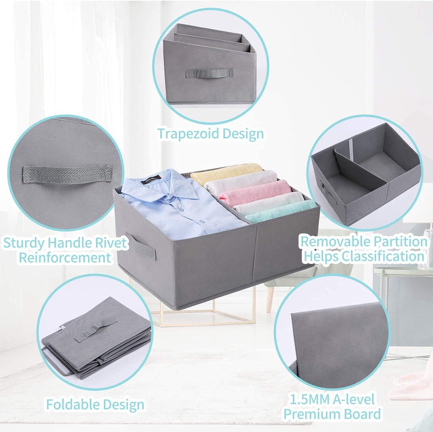 GRANNY SAYS Grands bacs de rangement avec couvercle, lot de 3 Ils permettent de garder votre maison bien rangée et s'accordent avec n'importe quel décor avec leur élégante finition gris clair. Boîtes Rangement Pliables Tissu Jeu De 4 Boîtes De Rangement En Tissu,33X38X33 Cm Boîte De Rangement Pliable Avec Poignées Pour Armoire Étagère Casier-Gris À Chev - Maison Armoire En Tissu * Gain de place : grâce à leur design pliable, ces paniers de rangement en tissu se replient facilement à plat lorsqu'ils ne sont pas utilisés. Gain de place : grâce à leur design pliable, ces paniers de rangement en tissu se replient facilement à plat lorsqu'ils ne sont pas utilisés. Cela crée des solutions de rangement individuelles qui peuvent être agrandies ou réduites selon les besoins et l'espace disponible. * Accès rapide Ensemble de 3 boîtes de rangement en tissu pliables avec poignées pour armoires et étagères (petit grijs Wit) · Commander et payer via · Livraison offerte par... Contenu de l'emballage 1 ensemble de paniers de rangement en tissu. Caractéristiques techniques : Nom du produit : paniers de rangement en tissu Matériau : tissu non tissé. * Conception d'accès rapide : le panneau avant ouvert innovant de ces paniers d'armoire trapézoïdaux permet une vue instantanée et un accès instantané à vos articles rangés. Ils assurent une garde-robe bien rangée et facilitent le changement grâce à leur organisation efficace. Dimensions : 30 x 30 x 6 cm., Couleur : gris clair., Coupe : bonne., Quantité : 3 pièces. Fonctionnalités : * Conception d'accès rapide : le panneau avant ouvert innovant de ces paniers d'armoire trapézoïdaux permet une vue instantanée et un accès instantané à vos articles rangés.