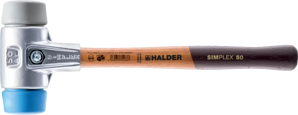 Maillet HALDER SIMPLEX TPE Souple Avec Boîtier En Fonte Malleable Et Manche En Bois 40 Tpe Maillet HALDER SIMPLEX TPE souple / superplastique avec boîtier en aluminium et manche en bois... Outil Montage Mécanique Maillet HALDER SIMPLEX Nylon Avec Boîtier En Fonte Malléable Renforcée Et Manche En Fibre De Verre - D=60 Mm - 3708.060 Maillet Halder Avec Manche Maillet SIMPLEX avec de chaque côté un embout nylon (blanc, dur, très résistant à l'usure, pas d'écaillage même à des températures négatives, résistant à l'huile et à la graisse). Boîtier en fonte malléable avec douille de protection du manche intégrée et grande résistance à la rupture Résistant aux huiles et graisses Avec un Boîtier en acier moulé renforcé