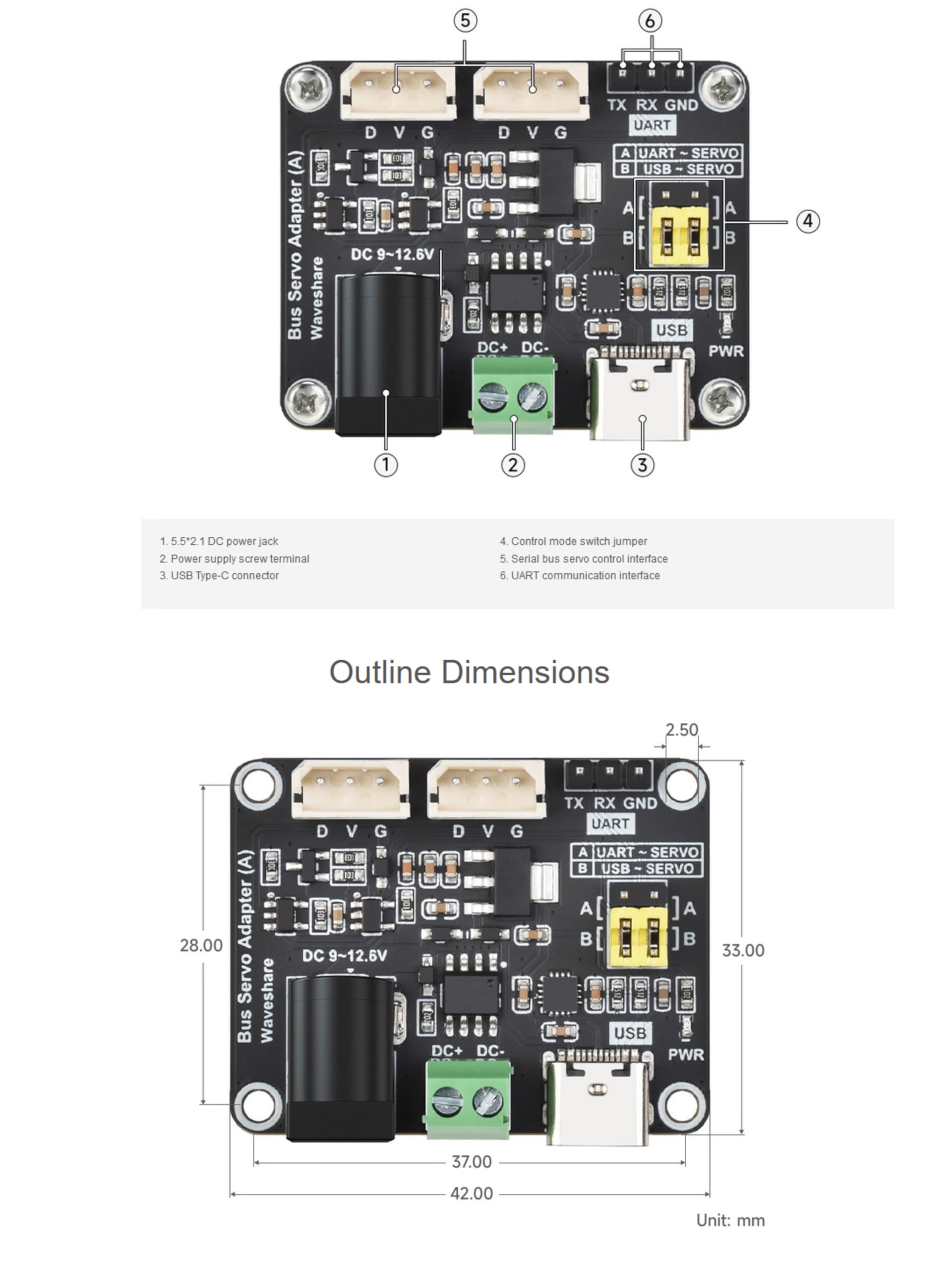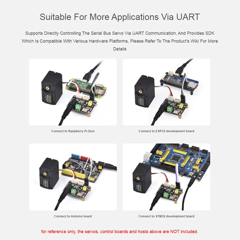 【Intégration et développement faciles】:L'adaptateur bus servo plug-and-play USB control plus UART SDK support accélère le prototypage et le développement avancé. Serial Bus Servo Driver Board, Integrates Servo Power Supply And Control Circuit, Applicable for ST/SC Series Serial Bus Servos | Bus Servo Adapter (A Cette carte innovante combine l'alimentation du servo et le circuit de contrôle en une seule solution efficace. Profite des avantages d'une complexité de câblage réduite et d'installations simplifiées, rendant tes projets plus propres et mieux organisés Avec ses deux interfaces de contrôle (UART et USB), la carte fonctionne parfaitement avec Raspberry Pi 4, Arduino, STM32, ESP32 et Jetson Nano. Les produits comprennent : 1 * Adaptateur de servo de bus Seeed Studio XIAO ESP32C6 Development Serial Bus Servo Driver Board Für ST/SC Reihe Binghe Bus Servo Treiber Platine Bus Servo Adapter UART Schnittstelle Unterstützt C/C++/Python Kompatibel Mit Raspberry Pi Mit Arduino Mit STM32/ESP32 Servomoteur Arduino Paramètres : Tension d'alimentation : DC9~12., 6V (servos série ST) Interface d'alimentation : 5., 5*2., 1mmDC Interface de communication : UART Diamètre du trou de positionnement : 2., 50mm Espacement du trou de positionnement : 37., 00x28., 00mm Caractéristiques : Utilisé pour se connecter à un ordinateur hôte ou à un MCU pour contrôler la rotation de la machine bus Jusqu'à 253 machines bus de la série ST/SC peuvent être contrôlées en même temps (à condition que l'alimentation soit suffisante) Entrée de tension 9~12,6V (la tension d'entrée doit être adaptée à la tension du servo) Fournit une solution pratique pour contrôler le servo bus Intègre des circuits de contrôle stables pour assurer le fonctionnement stable du servo bus. 【Large compatibilité avec les servomoteurs ST/SC】:L'adaptateur servo bus prend en charge les servos ST3215, ST3025, SC09 et autres servos bus ST/SC avec une alimentation directe en courant continu pour un fonctionnement stable. 【Taille compacte avec des fonctions puissantes】:L'adaptateur servo bus se présente sous une forme miniature avec une interface d'alimentation et un circuit de commande intégrés - idéal pour les constructions à espace limité. 【Options de contrôle double UART & USB】:Choisissez entre la communication UART ou USB pour un contrôle flexible en utilisant Raspberry Pi 4, Arduino, Jetson, et plus.