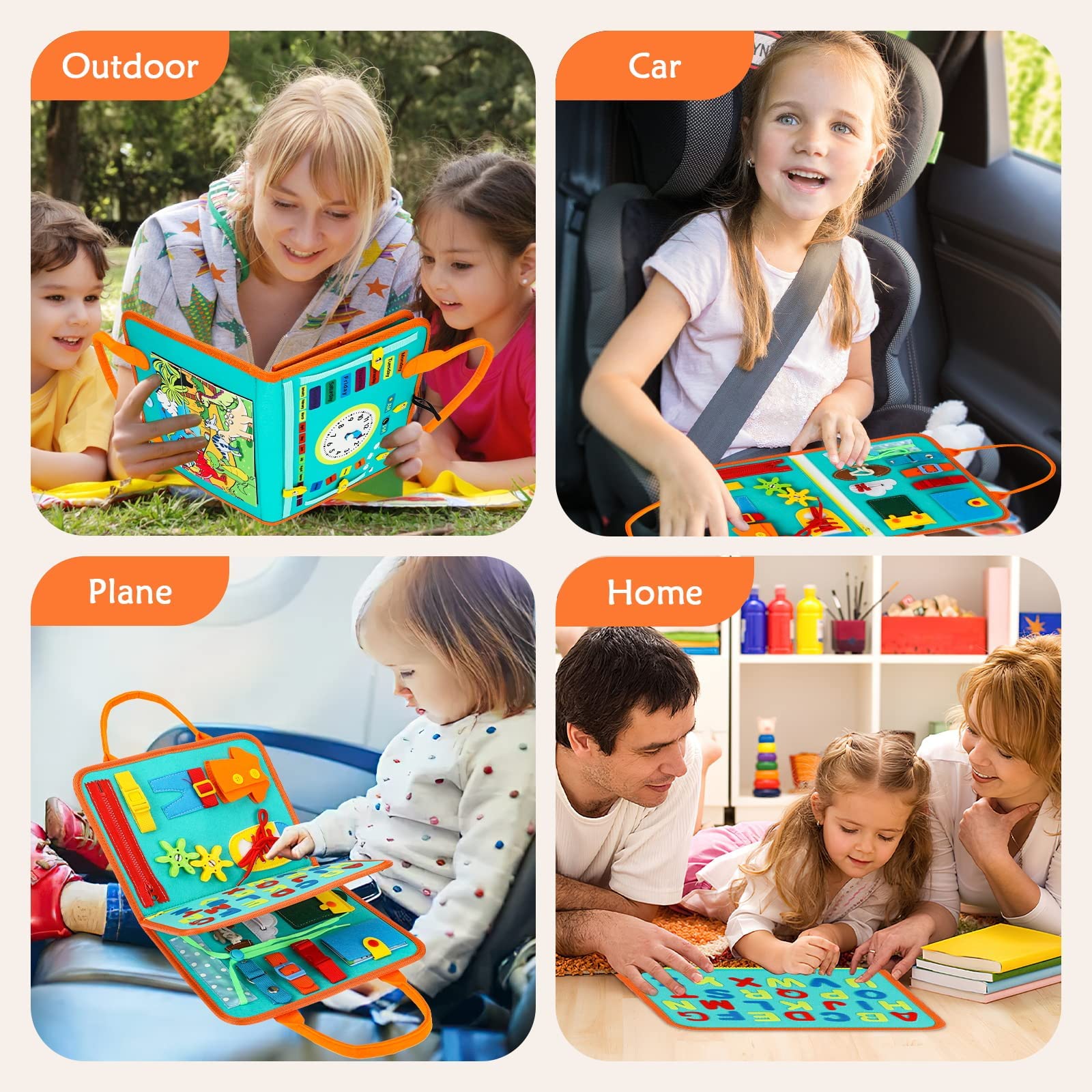 Chaque page est remplie de différentes activités qui divertiront vos enfants pendant des heures. Busy Board Dinosaure │ Matériel Montessori │ Lignea Kids Portable pour les Voyages : Idéal pour les voyages en voiture et en déplacement pour la plupart des sacs à couches, c'est une excellente option silencieuse pour les voyages en avion ou en voiture, les gardant occupés et engageant les petites mains et les esprits en déplacement. Busy Board Yoocaa , Jouets Montessori Pour Les Tout-Petits De 3 4 Ans, Jouets éducatifs De Voyage Jeux Educatif 2 Ans Description du produit Nom : busy board du dinosaure Pages : 4 pages (8 faces) Matériau : tissu doux et feutre Dimensions plié : 24 x 20 x 4 cm - Plusieurs pages de contenu, profitez de votre moment heureux Un tableau chargé est comme un livre rempli d’activités passionnantes. - Léger et facile à transporter Suffisamment léger pour s'adapter à la plupart des sacs à dos, sa conception portable le rend facile à transporter. Kizplays Busy Board, jouets ontessori pour tout-petits, 4 pages, jouet... Cadeau Idéal pour les Tout-petits : La planche occupée pour tout-petits est remplie de motifs colorés et de diverses activités d'apprentissage, suffisamment pour attirer l'attention des enfants. Valeur Pédagogique : Favorise la motricité fine, la perception sensorielle et le développement cognitif grâce à divers éléments interactifs Léger et portable : Le 4 couches jouet planche montessori d'apprentissage est léger et équipé d'une poignée pratique, permettant ainsi aux enfants de le transporter facilement, Idéal pour une utilisation en extérieur ou en déplacement – l'apprentissage et le plaisir partout MONTESSORI JOUETS D'APPRENTISSAGE : Busy Board 20 en 1 en feutre souple, spécialement conçu pour les enfants de 1 à 3 ans pour favoriser le développement de la petite enfance - Cadeau idéal pour les enfants C'est le cadeau parfait pour les tout-petits âgés de 1 à 4 ans comme anniversaire, prix de carnaval, Noël, Halloween, Thanksgiving, prix de concours. Thème de la Dinosaure : Quiet Book conçu avec amour avec des motifs de la dinosaure offre des possibilités de découverte passionnantes pour les tout-petits Les différents fermoirs, boutons et éléments interactifs développent la dextérité et favorisent de manière ludique la compréhension de la cause à effet. C'est également un excellent jouet pour aider les enfants autistes à rester occupés et tranquilles
