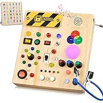 Planche Activité Montessori Bois Talifoca Montessori Busy Board à Partir De 1 An, Planche D'activité En Tableau Montessori Bébé 1 An Busy Board Montessori, Busy Board 6 en 1, Planche Montessori, Tableau Montessori avec Lumières Montessori Busy Board Activity Board Board - Jouet en Bois Montessori avec 8 LED - Jouet... Parfait comme planche de motricité ou Busy Board Baby pour favoriser la motricité fine. Jouet éducatif interactif avec lumière : 8 interrupteurs différents activent les lumières LED colorées (2 piles AAA nécessaires, non incluses). Jouet de voyage compact pour les déplacements : léger et maniable, parfait comme activité dans la voiture ou en voyage. Jouet Montessori naturel et sûr à partir de 1 an : fabriqué en bois massif (pas de bois collé) pour un plaisir de jeu durable. Cadeau éducatif : le cadeau idéal pour le 1er ou le 2e anniversaire, Noël ou la fête des enfants. Un jouet Montessori populaire de 2 ans pour les garçons et les filles. Un jouet Montessori amusant à partir de 2 ans pour les petits explorateurs. Toupies lumineuses pour enfants, jouet rotatif clignotant, jouet ro...