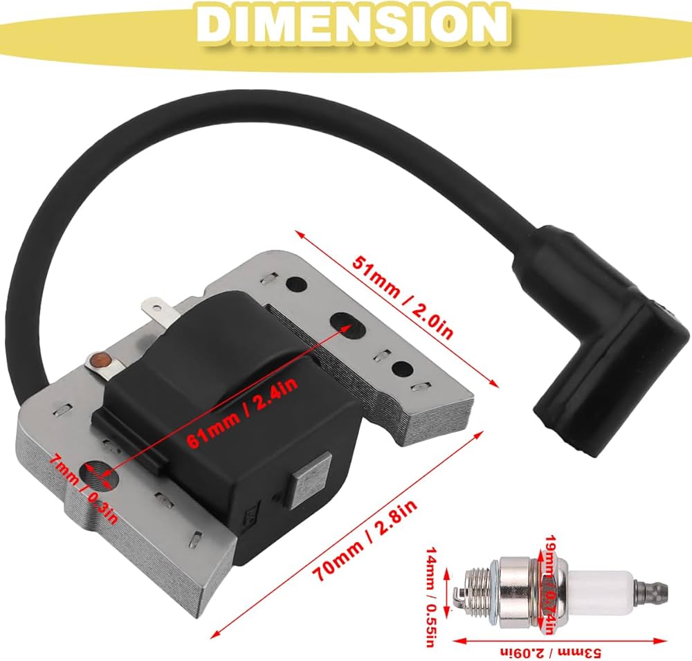 [Efficacité améliorée] En améliorant la synchronisation de l'allumage, cette bobine contribue à une meilleure efficacité du carburant et à une réduction des émissions, favorisant une expérience de tonte plus verte. Pièce Rechange Tondeuse CS35S 582618201 Bobine D'allumage Pour Tondeuse à Gazon Briggs And Stratton [569 Bobine Remplacement 582618201 Caractéristiques : * Performance haute tension : cette bobine d'allumage est conçue pour fournir une sortie haute tension optimale, un démarrage fiable et une performance constante pour votre tronçonneuse de tondeuse à gazon. Compatibilité pour CS35S : spécialement conçue pour les modèles CS35 et CS35S, cette bobine d'allumage s'adapte en toute sécurité sans modification et fonctionne parfaitement avec l'équipement existant pour un fonctionnement fluide * Efficacité améliorée : en améliorant la synchronisation de l'allumage, cette bobine contribue à une meilleure efficacité énergétique et à une réduction des émissions, favorisant une expérience de tonte plus écologique et plus économique. Caractéristiques : * Nom du produit : bobine d'allumage., *Matériau : métal. NEUF NGK ALLUMAGE Prise pour Honda Gazon Tondeuse HR2160 EUR 5,26... * Installation facile : le design simple permet une installation rapide et sans tracas, ce qui le rend accessible même pour les personnes ayant des compétences mécaniques limitées. *Compatibilité : spécialement conçu pour les modèles CS35 CS35S remplace 582618201, cette bobine d'allumage s'adapte parfaitement et améliore la fonctionnalité de votre équipement sans modifications. Haute performance de tension : conçu pour fournir une sortie haute tension optimale, des démarrages fiables et des performances constantes pour votre tronçonneuse de tondeuse à gazon. Sortie haute tension france VA * Construction : construite avec des matériaux robustes, cette bobine d'allumage est résistante à l'usure, promettant une longévité et un fonctionnement fiable dans diverses conditions. Installation facile : le design simple permet une installation sans tracas, ce qui le rend accessible même pour ceux qui ont des compétences mécaniques limitées.