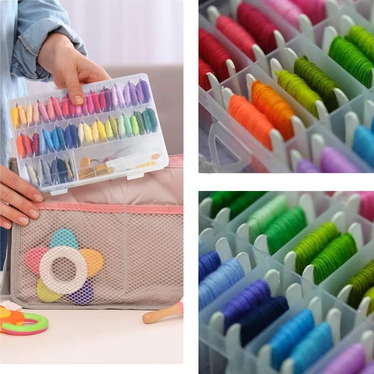 1 boîte de rangement en plastique. Boîte de rangement à 24 compartiments : Les planches à clapet de la boîte sont amovibles, vous pouvez les réorganiser selon vos besoins pour ranger différentes choses telles que des fils, des aiguilles, des perles, un dé à coudre, un enfile-aiguille, etc. Facile à utiliser : Les tailles de ces bobines de fil sont compatibles avec les grilles de la boîte, le fil à broder en croix peut être enroulé autour des bobines, chaque bobine dispose de 2 fentes pour fixer la tête de ligne. Quantité d'étiquettes autocollantes : 552 pièces., Quantité : 1 pièce. Boîte de rangeent pour fil à broder et point de croix - Enrouleur de 552 autocollants numérotés. Dimensions des bobines : environ 4 x 3,7 cm. Kit de couture,Boîte de rangement de fil à broder, 24 grilles en... Autocollants numérotés : comprend 552 numéros de couleur, vous pouvez les coller sur des bobines pour organiser et classer les fils à broder Lot de 50 bobines de fil à broder en plastique blanc avec boîte de rangement en plastique à 24 compartiments et 552 autocollants numérotés pour loisirs créatifs, couture Caractéristiques de la boîte de rangement pour broderie : Couleur de la boîte : transparent. Garder propre : Les bobines d'enroulement de fil en plastique peuvent vous aider à organiser vos fils de point de croix pour les rendre bien rangés, aider à économiser les fils restants et les rendre pratiques pour votre prochaine utilisation. Organisation Fils Point De Croix Couture Rangement Pour Broderie PERFETSELL Lot De 120 Bobines De Fil à Broder En Plastique Blanc Avec Point De Croix, Boîte De Rangement, Enrouleur De Fil Et 165 Autocollants Vides Pour Bricolage, Couture Lot 50 Bobines Plastique Blanc Kit d'aiguilles à broder avec boîte en plastique pour fil à broder diy... Contenu : 50 bobines de fil blanc, une feuille d'autocollants numérotés de couleur, une boîte de rangement