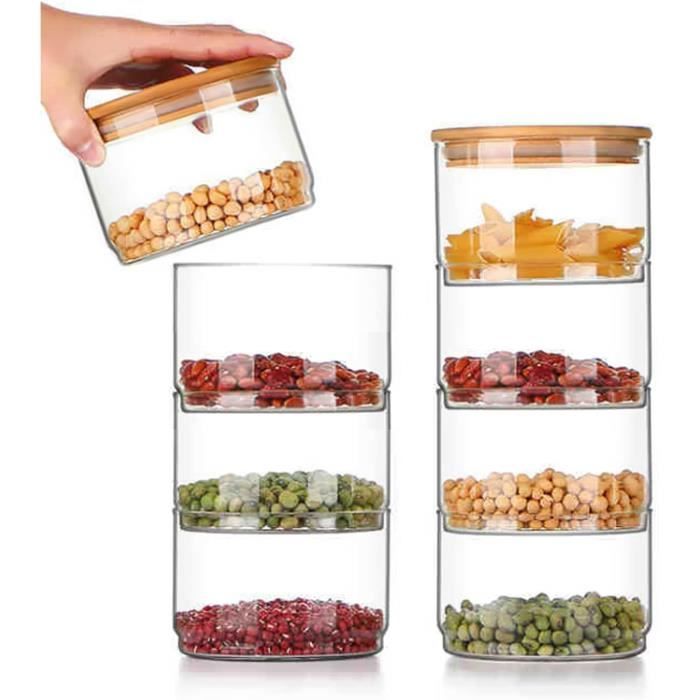 Lot de 10 bocaux en verre transparents avec couvercle bois for le rangement Pour Céréales Et Cuisine Nom : bocaux de rangement en verreMatériau : verreCouleur : TransparentTaille 6x6cm, 6x8cm, 6x10cm, 6x12cm, 6x15cmGamme d'applications : vous permettant de présenter une gamme de produits secs dans les garde-manger et sur les comptoirs, de la farine et du riz au café, aux épices, aux savons, etc. Bocaux Verre Couvercle Bois 6x15cm Lot 10 EZOWare Lot De 10 Bocaux à Épices, Hermétique Bocal En Verre Avec Couvercle En Bambou Et Pot De Bocaux Conservation Aliments Secs Bocaux en verre empilables avec couvercles en bambou, bocaux de rangement en verre à 3 niveaux, récipients de rangement empilables, bocaux en verre avec couvercles hermétiques pour la cuisine Ellenge Bocaux de rangeent en verre avec couvercles en bois de babou...