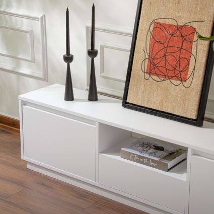 Tv Meuble Moderne Meuble Tv Chambre Meuble TV Mural Blanc Et Bois 200cm - Meuble Flottant Pour Salon Et Petit Appartement Tv 140 Cm Design Moderne The Living Store Meuble TV mural blanc 40,5x30x60 cm bois d'ingénierie euble TV ural flottant pour salon avec lecteur DVD/Blu-Ray 110 c... [Durable et sûr] Ce meuble TV mural flottant est fabriqué en bois massif de haute qualité, respectueux de l'environnement, durable et facile à nettoyer. Ses angles arrondis vous protègent, vous et votre famille [Console multimédia TV flottante à compartiments de rangement multiples] Exploite l'espace vertical avec des armoires de rangement et une porte abattante, offrant un grand espace de rangement et une intimité optimale. [Options bicolores, adaptées à différents styles] Disponible en noir classique et blanc pur, ce meuble TV flottant en bois massif offre un style apaisant et élégant, tandis que le blanc offre une sensation de simplicité et de fraîcheur, s'adaptant facilement à différents styles d'intérieur et préférences esthétiques Réparez votre mur en seulement 30 minutes. Convient aux murs en briques rouges, en béton, en briques, aux carrelages/parements en bois et aux dalles en mousse. Pour toute question, nous vous apporterons une solution satisfaisante sous 24 heures Ensemble meuble TV mural blanc et chêne