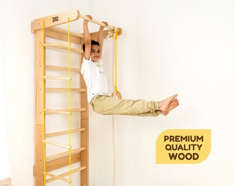 Barre Musculation Échelle Suédoise En Bois Avec Barres De Traction Et Barres De Support 120.2kg Installation Murale Espalier WALLBARS - Sébastien Didier Barres murales en bos Échelle suédose « KNDER-1 » Salle de sport à... Taille compacte qui convient aux salons, balcons ou études - Idéal comme entraîneur pour enfants, outil de musculation pour adultes ou aide à la rééducation pour les personnes âgées pour les maisons, les communautés et les studios. Universel pour adultes et enfants : cette échelle polyvalente est parfaite pour toute la famille. Il sert à la fois d'outil de fitness pour les adultes et d'aire de jeux pour les enfants. Barres murales de gymnastique polyvalentes : tout-en-un pour la force, l'étirement, l'entraînement fonctionnel et la coordination, idéales pour les tractions, les exercices suspendus, la gymnastique, le renforcement musculaire. Sa construction robuste permet aux enfants de s'engager dans un jeu actif et de développer leur motricité. Installation facile et adaptation murale : installation fixe avec vis d'expansion, le paquet d'accessoires comprend un manuel d'installation détaillé, une installation économe en main-d'œuvre et un entretien facile ultérieur. Il est adapté pour les murs en bois, en béton et en brique ; s'il est installé sur des murs spéciaux tels que les plaques de plâtre et les murs de quille en acier léger, il est recommandé de l'assortir avec des supports de charge spéciaux (à acheter séparément) pour garantir une utilisation sûre. Espalier - NAIZY - 6 en 1 - Bois - Charge 100 KG - Échelle Suédoise...