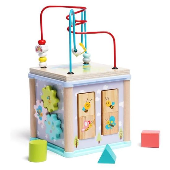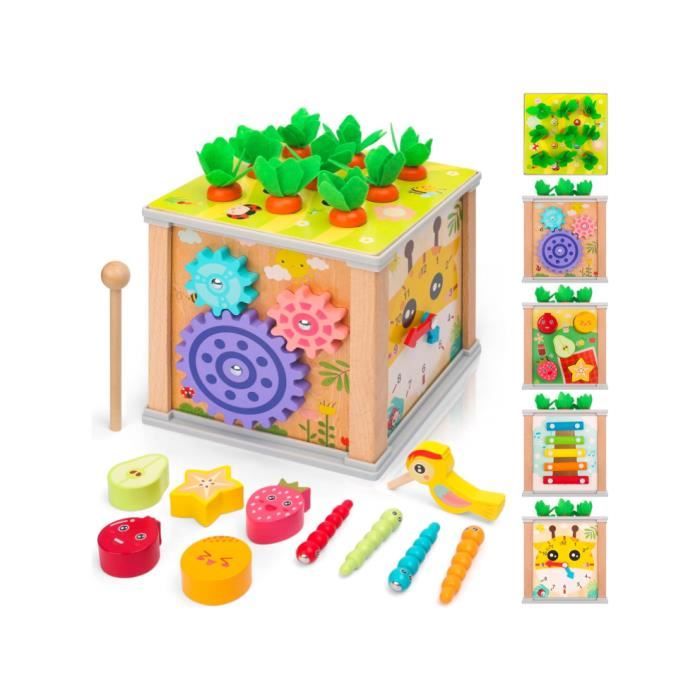 CUBE D'ACTIVITÉS MULTIFONCTIONNEL : Ce cube d'activités en bois offre de multiples activités stimulantes dans un seul jouet, comme le tri des formes, les labyrinthes de perles, les engrenages rotatifs, et bien plus encore. Il est conçu pour divertir les tout-petits tout en développant leurs capacités cognitives et motrices Un jouet éducatif complet pour l'éveil de votre enfant Ce jouet Montessori 3 en 1 est conçu pour accompagner le développement cognitif et moteur de votre enfant dès 12 mois. Inspiré de la pédagogie Montessori, il combine plusieurs activités d'apprentissage dans un seul jouet robuste et coloré Cube D'activité En Bois Avec Labyrinthe De Perles Pour Bébé Horloges Cube d’Activité 7 en 1 Centre d’Activité Labyrinthe Perle à