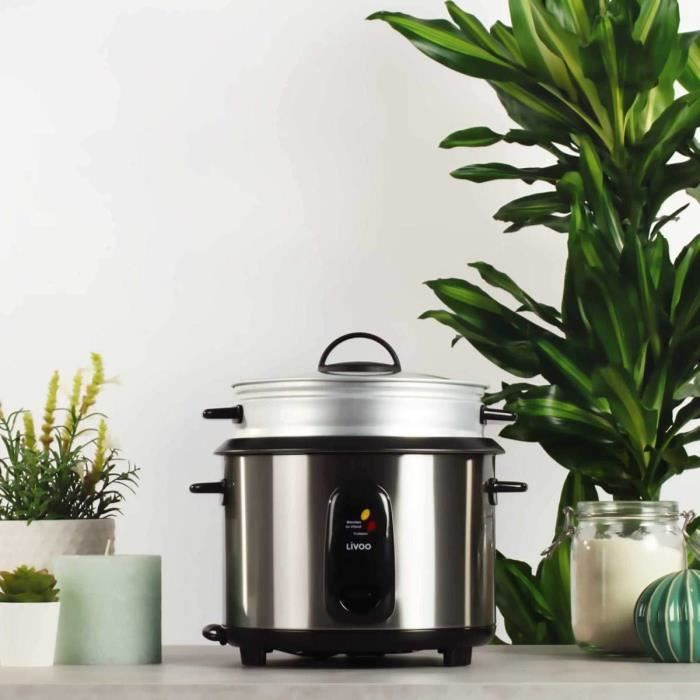 Cuiseur à riz et cuiseur vapeur en acier inoxydable - LIVOO Bon pour chauffer les ramen, les pâtes, le fromage, la soupe, les céréales, les flocons d'avoine et tout aliment qui ne passe pas au micro-ondes. Cuiseur à Vapeur Légumes Cuiseur Vapeur,Cuiseur à Vapeur En Bois De Bambou En Acier Inoxydable, Ustensile De Cuisine Panier Vapeur En Acier Inoxydable 18 Cm Cuisson Vapeur Dimensions : 17,5 x 17,5 x 9 cm Grâce à sa fonction de maintien au chaud, le riz reste chaud et savoureux durant des heures. Panier vapeur inclus, Pratique, préparez deux plats en même temps Optez pour le cuiseur à riz et vapeur en acier inoxydable LIVOO DOC293, idéal pour préparer jusqu'à 2,8 L de riz. Avec une puissance de 1000 W et un panier vapeur en aluminium, il garantit une cuisson parfaite. Sa cuve amovible antiadhésive et son couvercle transparent avec aérateur vapeur assurent une utilisation pratique 💖 Design bosselé au fond, reste collé au bureau, résistant à l'usure et antidérapant. 💖 Design dense et trous fins, bonne ventilation, plus et plus d'efforts pour la cuisson à la vapeur des aliments. 💖 Bon pour chauffer des ramens, des pâtes, du fromage, de la soupe, des céréales, des flocons d'avoine et tout aliment qui ne passe pas au micro-ondes. Il peut être chauffé uniformément et rapidement cuit à la vapeur, raccourcissant le temps d'attente pour de délicieux aliments. 💖 Fabriqué en acier inoxydable de qualité alimentaire, , résistant aux hautes pressions, pas de rouille, robuste et durable, facile à nettoyer, passe au lave-vaisselle. Description du produit Design à trous denses et fins, bonne ventilation, plus rapide et plus d'efforts pour la cuisson à la vapeur des aliments.