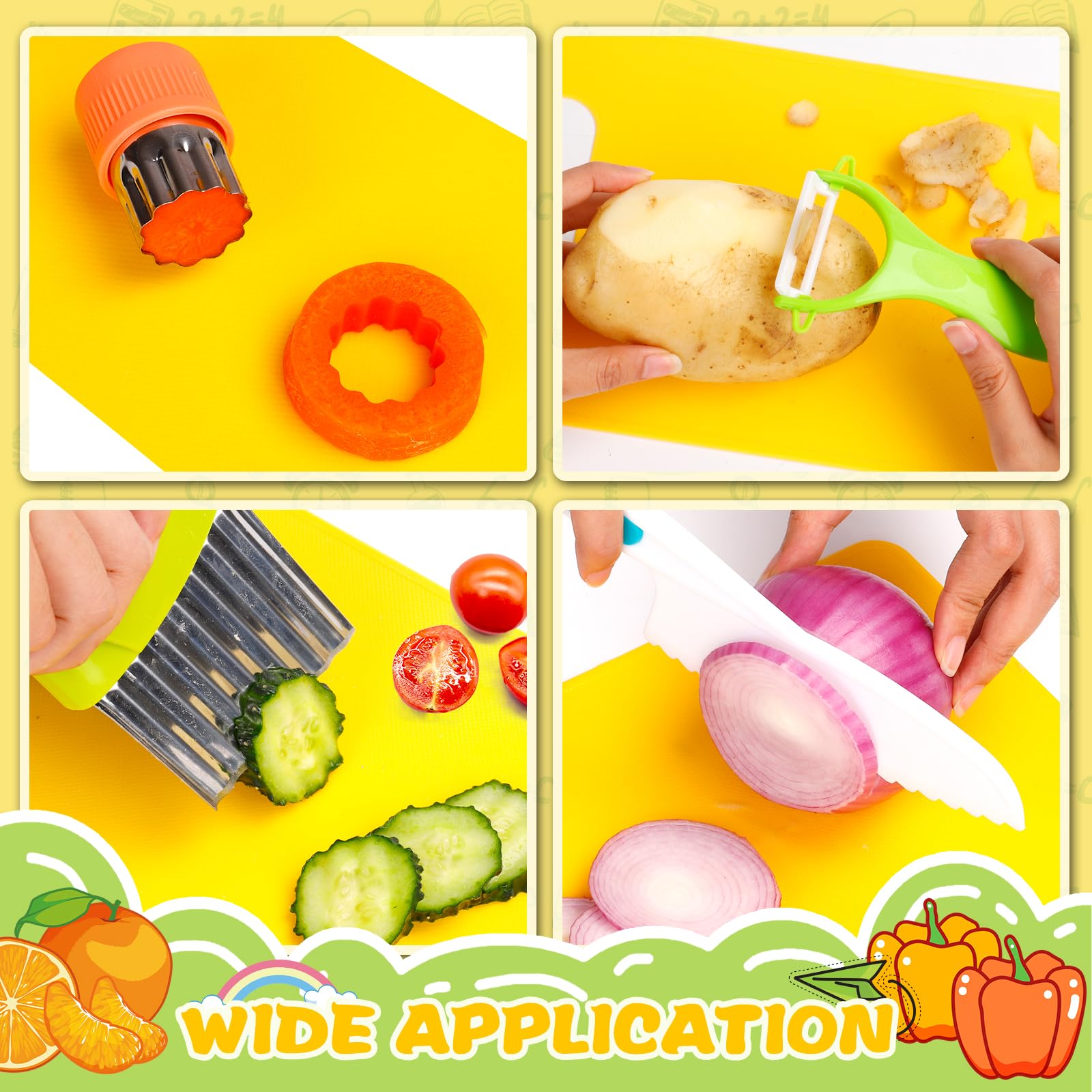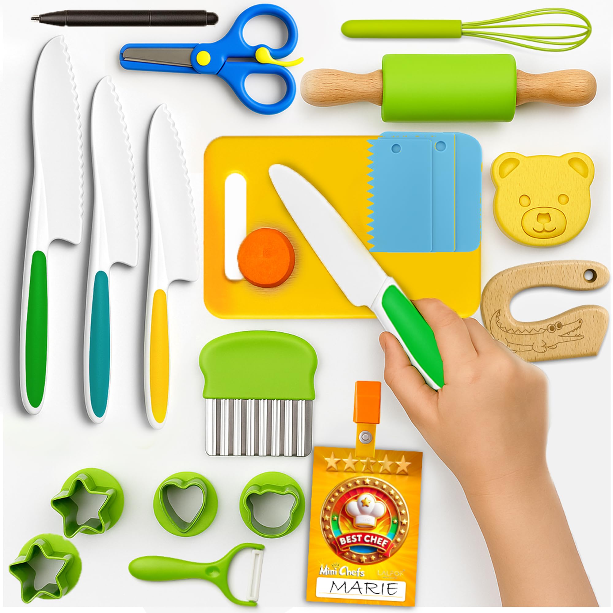 Le design de la boîte permet de gagner de la place et encourage les enfants à adopter de bonnes habitudes d'organisation dans leur vie quotidienne. couteau Genius Cut de chez Les Petits Architectes Il est idéal pour les enfants dès l'âge de 3 ans, pour cuisiner comme les grands... 🥒 【Conception sécurisée】Ces couteaux de cuisine pour enfants sont conçus avec des bords dentelés pour protéger les petites mains des lames tranchantes, tout en permettant de couper facilement fruits et légumes. Remarque : Bien que le produit soit conçu pour la sécurité, nous recommandons tout de même que les enfants soient supervisés par un adulte (les moules de découpe en métal doivent être utilisés sous surveillance adulte). Ensemble Couteaux 15 Pièces Cuisine En Bois Enfant Azyvu Kit Couteau Sécurité De Cuisine Pour Enfants - 16 Pièces Couteau Kit Cuisine Enfant Kit Cuisine Enfant 15 Pièces Montessori Idéal pour les filles et garçons de 2 à 8 ans – un cadeau d'anniversaire parfait. Matériaux Sécurisés: Fabriqués en acier inoxydable de haute qualité et en matériau PP, solides, durables, non toxiques et inodores. 🧑🍳 【Set de 15 pièces pour enfants】Comprend : 3 couteaux dentelés de tailles différentes, 1 tablier, 1 paire de moules à sandwich, 1 couteau ondulé, 1 couteau pour tout-petits, 1 couteau en bois, 1 économe en Y, 4 emporte-pièces, 1 planche à découper et 1 boîte égouttoir pliable. Ainsi, les enfants peuvent s’amuser en cuisinant en toute sécurité. Parfait pour les réunions familiales, pique-niques, fêtes d’anniversaire et activités parent-enfant. Un Cadeau Spécial: En tant que cadeau, il permet non seulement aux enfants de découvrir les joies de la cuisine, mais aussi de développer leurs compétences pratiques. Avertissement De Sûreté À utiliser sous la surveillance directe d'un adulte 4 couteaux en plastique 1 couteau en bois · Couleur(s) : naturel motifs multicolores · Dimensions : Couteau en bois : 10,8 × 10,6 × 1,6 cmCouteaux ondulés... Les bords sont soigneusement polis et sans bavures, permettant aux enfants de profiter de l'expérience culinaire en toute tranquillité. En s’exerçant, ils développeront leur autonomie et leur sens des responsabilités. Matériel Pédagogique Cuisine Set De 8 Couteaux Montessori Lectorias Pour Enfants Dès 2 Ans | Couteaux Sécurité Cuisine Set Couteaux Toddler