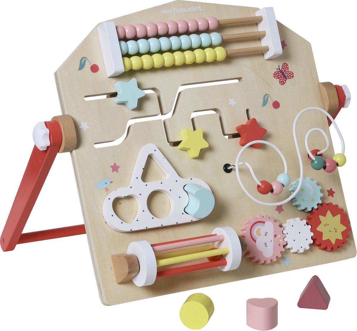 Jeu De Tap-tap GREEN FOREST En Bois FSC® Multicolore – Vertbaudet frais - Premières Manipulations - Djeco Magasin Cette planche d'activités d'inspiration Montessori est idéale pour accompagner bébé dans ses premières découvertes. Conçue en bois FSC®, elle rassemble de nombreuses manipulations sensorielles : ardoise magique, engrenages, miroir, labyrinthe, perles, hochet, petites portes à ouvrir… Un jouet riche, durable et décoratif, parfait pour éveiller bébé tout en décorant sa chambre Table D Activité Bebe Ardoise écran Magique En Bois FSC® - Bois, Jouet Ardoise Magique Bebe 18 Mois Description du produit Description :Une planche d'activités en bois avec une ardoise magique, des bouliers, des engrenages, un miroir et un hochet ! Planche d'activités avec ardoise magique Green Forest en bois1 labyrinthe avec 5 palets imprimés animaux et éléments de la forêt à faire coulisser (1 renard, 1 ours, 1 hibou, 2 feuilles)2 bouliers avec perles colorées1 miroir pour stimuler la vue1 fenêtre avec un hibou et une surprise qui se cache derrière quand on ouvre la porte3 engrenages à billes à faire tourner1 hochet avec bille à l'intérieur à faire tourner afin de stimuler l'ouïe de bébéUn ours à faire coulisser dans la fente d'avant en arrière pour stimuler la motricité fineAu centre, une ardoise magique qui s'efface lorsqu'on fait glisser la manette prévue dessous, un crayon adapté sur le côté permet de dessiner sur l'ardoiseSur le côté, 2 vis permettant un repliage facile et un gain de place lors du rangement2 boutons en bois onoff à manipulerDimensions- 58cm de large- 53cm de hautL'info en +Dès 10moisFavorise l'éveil sensoriel (couleurs, formes., ., ., )Exerce l'habileté manuelleDéveloppe la coordination motrice et visuelleStimule l'imaginationFavorise la persévérancePlanche d'activités GREEN FOREST en bois FSCConseils d'entretien : pas de blanchiments pas de nettoyage à sec ne pas repasser ne pas sécher en tambour Avertissement De Sûreté Pour garantir la sécurité et le bon usage des produits Vertbaudet, il est essentiel de respecter les indications suivantes : Toujours vérifier l'âge recommandé inscrit sur l'étiquette ou l'emballage avant de donner un produit à un enfant. Une planche d'activités en bois avec une ardoise magique, des bouliers, des engrenages, un miroir et un hochet ! Un jouet complet pour stimuler l'éveil de bébé... Un jouet complet pour stimuler l'éveil de bébé et développer sa motricité fine. Vérifier régulièrement l'état des produits pour s'assurer qu'ils ne présentent aucun risque pour l'enfant. 1 fenêtre avec un hibou et une surprise qui se cache derrière quand on ouvre la porte 1 miroir pour stimuler la vue