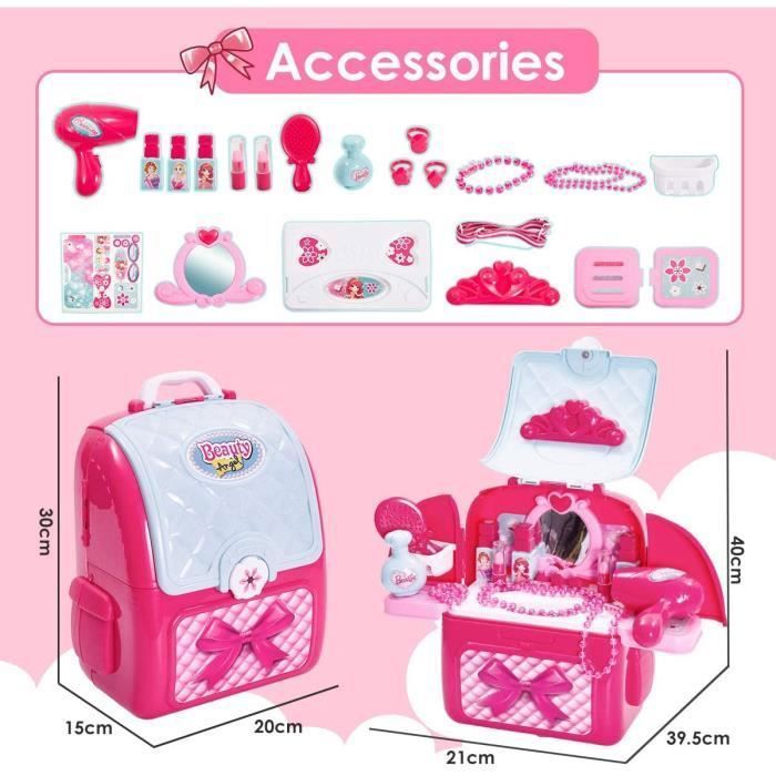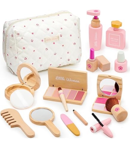 Coffret Maquillage Enfant Smartwo Maquillage Enfant En Bois, Jeu De Rôle Coiffeur, Kit Beauté Bois, Malette Faux Maquillage, Coffre à Jouets Coiffure, Accessoires Coiffeuse Fille, Avec Trousse Toilette, Cadeau 3 4 5 6 Ans Sac Portable Rangement Jouet D'imitation Maquillage Enfant, Jeux de Rôle, Bois Coffret Maquillage Enfant : 6 idées de coffret de maquillage pour votre... 【Sac à maquillage portable】Nous avons équipé cet ensemble d’outils de maquillage d’un sac à maquillage à motifs élégants, capable de contenir tous les outils. Il est pratique pour le rangement et le transport, permettant aux enfants de jouer au maquillage n’importe où : en camping, dans l’avion ou au parc. 【Jouet en Bois de Qualité Supérieure】La maquillage enfant jouet est soigneusement fabriquée en bois massif de haute qualité, avec des veines bois naturelles, une surface lisse et polie, et peinte avec une peinture écologique à l’eau non toxique et inodore, sans bisphénol A. 【Accessoires Complets】Cette jolie et pratique maquillage enfant contient tous les outils de maquillage nécessaires aux filles : sèche-cheveux, fer à lisser, boîte de poudre pour sourcils, crayon à sourcils, poudre compacte, palette d’ombres à paupières, pinceaux à ombres, rouge à lèvres, parfum, vernis à ongles, peigne à franges, miroir et élastiques pour cheveux. Tous les accessoires sont conçus avec des bords arrondis pour éviter les blessures. En jouant au théâtre de rôle avec cette maquillage enfant fille en bois, ils apprennent à communiquer leurs idées et exprimer leurs émotions, ce qui développe leurs compétences sociales, leur permet de faire des amis en jouant, d’améliorer leur motricité manuelle et de favoriser leur développement social et émotionnel. C’est un excellent cadeau pour les filles de 3, 4, 5, 6 ans et plus. Cette trousse de coiffure et maquillage va faire craquer les enfants de 3 à 8 ans ! Avec ses 10 accessoires, ils peuvent jouer à être coiffeur ou maquilleur...