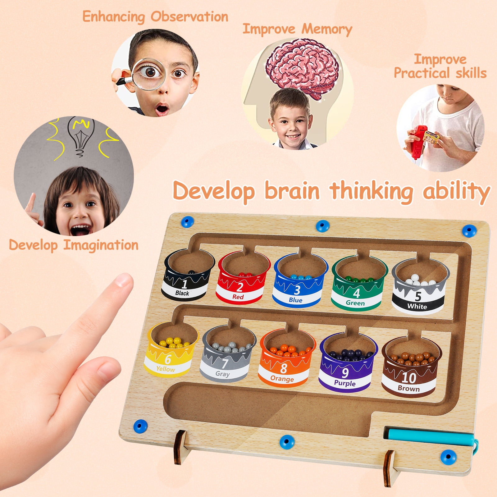 Parfait pour les garçons et les filles âgés de 3 à 6 ans Les bords arrondis garantissent l'absence de bavures coupantes, tandis que la conception magnétique solide empêche les perles de tomber. Il favorise la croissance par le jeu, encourage une activité calme loin des appareils électroniques et constitue une activité familiale idéale. Apprendre à associer les couleurs et à compter : adapté aux enfants âgés de 3, 4 et 5 ans, ce jouet Montessori améliore la motricité fine tout en enseignant le classement des couleurs grâce au guidage de perles colorées à travers le labyrinthe. Uping Jeux Montessori Jouet en Bois Jeu de Pêche Magnetique Jeux Enfant Sécurité et durabilité : fabriqué à partir de panneaux acryliques haute résolution résistants aux rayures pour une longévité accrue, avec un noyau en bois robuste. Les enfants peuvent utiliser le stylo magnétique pour attirer des billes magnétiques de couleurs et de quantités correspondantes vers leurs emplacements respectifs, ce qui en fait un cadeau de Noël ou d'anniversaire idéal pour les garçons et les filles âgés de 2 à 6 ans. En bois naturel, il combine un labyrinthe magnétique avec des perles colorées que l'enfant doit déplacer à l'aide d'un stylet aimanté. Excellent pour développer... Cadeau idéal : ce jouet labyrinthe magnetique inspiré de la méthode Montessori, adapté aux enfants de 3 ans et plus, aide à l'apprentissage des couleurs, des chiffres et du comptage. Description du produit Labyrinthe Magnetique Avertissement De Sûreté Les enfants doivent être accompagnés d'un adulte pour éviter toute ingestion accidentelle. Implication des parents : ce jeu de labyrinthe magnétique est bien plus qu'un simple jouet solitaire pour les enfants. Labyrinthe Magnetique Jouet Fille 5 Ans Jouet Montessori Magnétique En Bois - Labyrinthe De Comptage Et Tri Pour Enfants 2-5 Ans | Apprentissage Couleurs Et Motricité Jouet Motricité Fine Cadeau Anniversaire Enfant éducatif Labyrinthe En Bois Premium - Jeu D'équilibre Robuste 33,5 Cm, Améliore La Coordination ?il-Main, Plateau Classique. - Underscore / Jeux de plateau. Neuf dès 45... Les parents peuvent participer aux côtés de leurs enfants, renforçant ainsi leurs liens grâce à des exercices de comptage et d'association de couleurs tout en partageant des moments d'apprentissage enrichissants