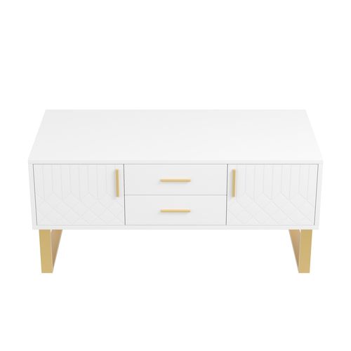 Table Basse Rectangulaire - Table Basse Avec 2 Tiroirs Et Plateau Brillant Plateau En Marbre Blanc Pour Salon Table basse en bois : tout ce qu'il faut savoir Dimensions 105x51x36cm Mdf Qualité Table Basse De Salon En Bois Massif Et En Verre (5 Pieds Poignées Dorés Design Moderne 【Design Elégant】Cette table basse moderne a été conçue en tenant compte de la sécurité et de l'élégance à la maison. 【Tendance et Polyvalent】Cette table basse présente un revêtement blanc associé à des éléments dorés, donnant une impression de raffinement et de luxe. Table basse 105x51x38cm, bureau incurvé, 4 tiroirs, poignées dorées et jambes, blanc · Dimensions (L x p x h) : 105x51x38cm · Poids (Jusqu'à) : 50 kg · Matière de... Son plateau rond et ses côtés ondulés sont parfaits pour les familles avec des animaux de compagnie et des enfants. Le contraste entre le blanc et l'or est à la mode et attire l'attention, convient à différents environnements intérieurs. Le mécanisme de tiroir qui coulisse en douceur vous permet d'ouvrir et de fermer facilement les tiroirs pour une organisation et un accès aisés à vos objets. 【Conçu avec Soin】Cette table basse est non seulement fonctionnelle, mais également conçue de manière à être pratique et facile d'accès.