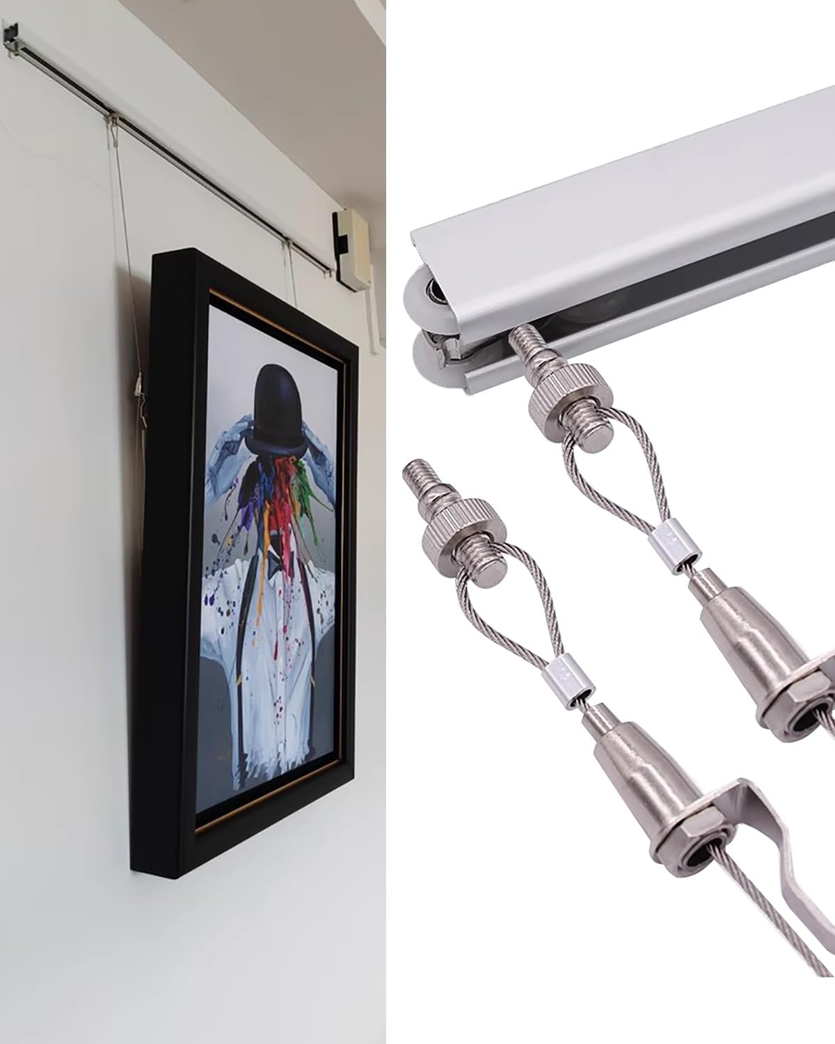 Vous pouvez l'ajuster librement selon vos besoins. Cimaise Tableau Sans Perçage STAS Windsor Rail (120cm) En Bois - Systeme D' Accrochage - Cimaises Pour Tableaux - Fil Transparent 150cm + Crochet Crochet De Moulure - Zipper + Kit Complet Rail Suspension Photo Invisible Lot de 12 crochets de suspension pour photos, 2 m × 1,5 mm, système de suspension pour photos, rails de suspension, max. Emballage inclus : vous recevrez 12 kits de suspension pour photos, dont 12 crochets de traction, 12 fils de cadre de 2 m de long de 1,5 mm de diamètre et... La quantité est suffisante pour répondre à vos besoins. Matériau durable : ce crochet pour cadre photo est fabriqué en acier inoxydable robuste avec des crochets plus épais pour une plus grande capacité de charge. Cimaise tableau plafond Artiteq - gamme complet pour fil transparent et... Emballage inclus : vous recevrez 12 kits de suspension pour photos, dont 12 crochets de traction, 12 fils de cadre de 2 m de long de 1,5 mm de diamètre et 12 crochets réglables. 40 kg, fil de suspension pour photos, crochets pour accrocher, peintures, œuvres d'art Caractéristiques : 1., Le matériau en acier inoxydable présente un éclat argenté classique avec des lignes simples et nettes., 2., Ce crochet de suspension est réglable en longueur et facile à utiliser, ce qui en fait le choix idéal pour accrocher des photos. Les deux crochets supportent jusqu'à 30 kg et ont une longue durée de vie. Kit cimaise H20 époxy blanc prêt-à-l'emploi pour fixation tableau avec fils transparent – Cimaises Civic Matériel: métal Paquet : 12 crochets pour photos. Design réglable : ce cordon de suspension pour photos est facile à régler en longueur pour s'adapter aux œuvres d'art et aux surfaces murales de différentes tailles.