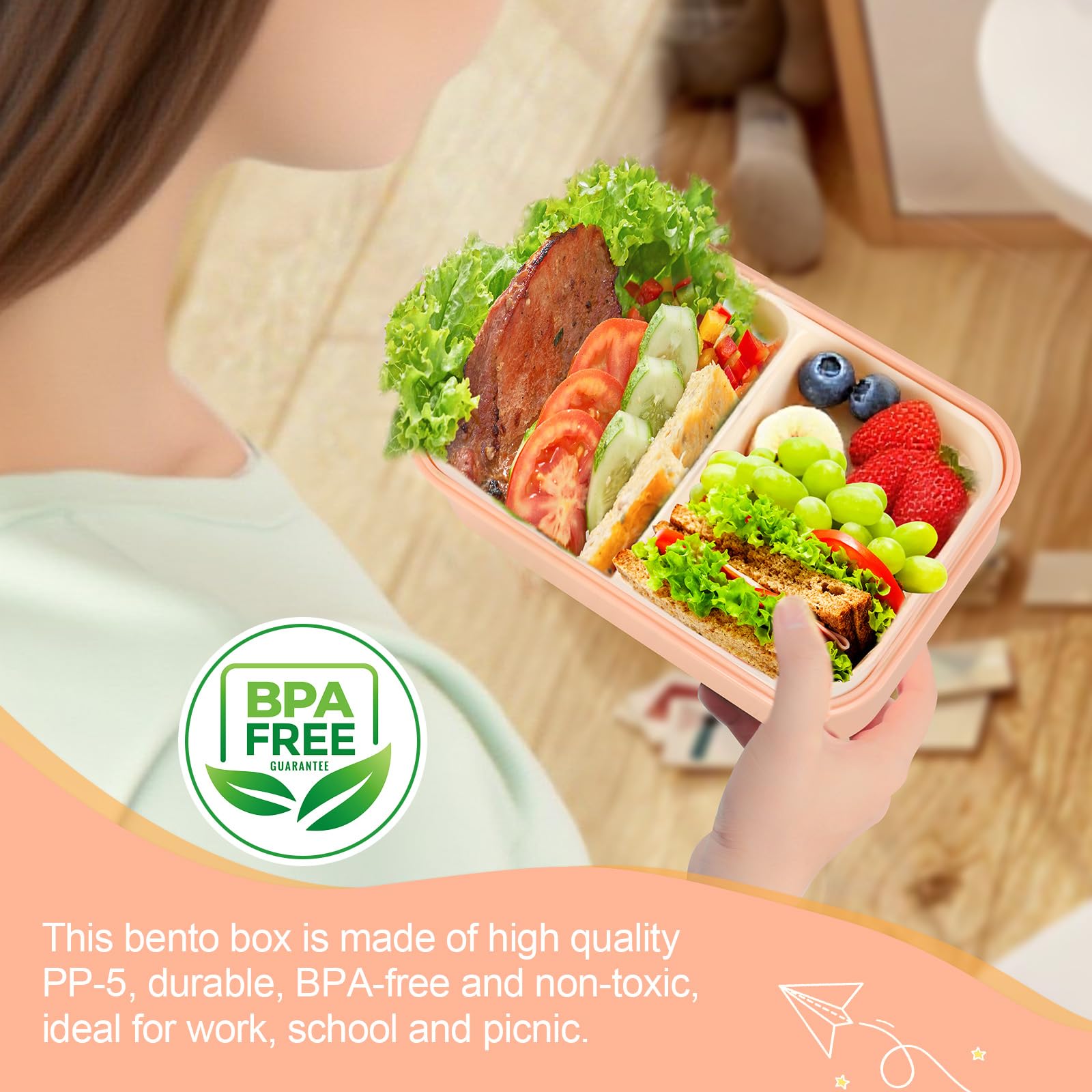 Matériau Alimentaire & Résistant:Fabriquée en PP sans BPA, cette bento lunch box résiste aux températures de -20°C à 110°C. Adaptée aux Adultes et Enfants:Que ce soit pour une boite lunch box adulte ou une lunch box enfant, son design modulable s’adapte à tous les besoins. La boite pique nique enfant est pratique et polyvalente. La boite repas compartiment garde vos aliments bien protégés. KATELUO Lunch Box, Bento Box 1400ML, Bento Lunch Box, Boite Repas avec 3 Compartiment et Compatible micro-ondes (à utiliser sans le couvercle), réfrigérateur et lave-vaisselle. Transportez-la en toute sécurité dans un sac sans risque de fuites. Aiuuee Lunch Box 1900ML Boite Repas avec Compartiments et Couverts, Boîte à Lunch pour Enfants... La lunchbox s’intègre parfaitement dans n’importe quel sac. Grande Capacité & Compartimentée:Cette boite repas offre 1900 ml de capacité (21,5*14,5*10 cm) avec 3 niveaux séparables. Parfaite pour le meal prep, les pique-niques ou les déplacements. Bentgo Lunch Box Boite Repas En 2 étages Avec Le Couvert, Boite Bento Hermétique. Boite Déjeuner Ideal Pour Le Pique Nique Le Travail Passe Au Micro Ondes Et Lave Vaisselle 4670256358 L Meal Box Faite au Québec, cette boîte à lunch très spacieuse peut facilement contenir une munchbox ou une yumbox (panino ou original) à plat, ainsi que... Légère et Facile à Transporter:Avec seulement 450 g, cette boite repas enfant est facile à emporter.