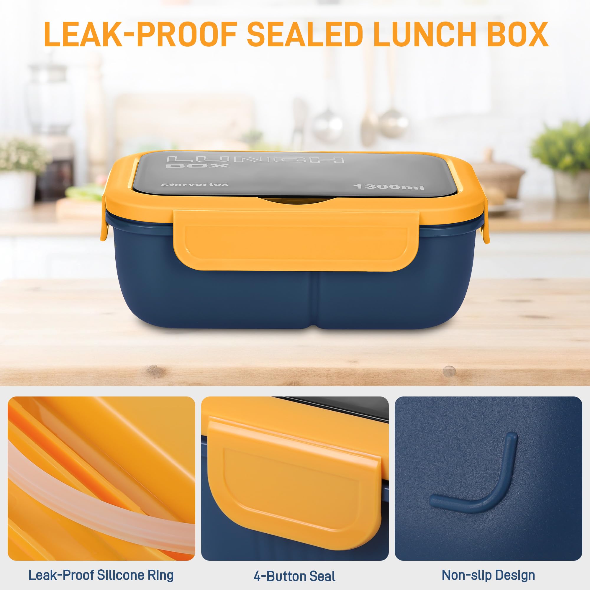 Boite Compartiment Alimentaire Lunch Box, Boite Repas Hermétique Avec Compartiment Pour Enfant-Adulte Meal Prep Containers 1100 Boite Repas Umami Starvortex Boîte à déjeuner pour enfants avec compartiments, idéale Bento Lunch Box, Résistance Chaleur Boite Repas Compartiment, Portable Boite a Lunch, Durable Boite Lunch Enfant, Antifuite Boite a Tartine Enfant Avec Couverts... Elle est suffisamment compacte pour tenir dans le sac à dos d'un enfant ou le sac de travail d'un adulte, ce qui en fait le compagnon de repas parfait à emporter partout. 【Étanche & Compartimentée】Savourez des repas parfaitement portionnés avec notre boîte bento de 1300ml. Ses trois compartiments séparés vous permettent d'emballer une variété d'aliments sans mélanger les saveurs, garantissant que chaque bouchée soit délicieuse. 【Légère & Portable】Pesant seulement 280g, notre boîte bento est facile à transporter sans alourdir votre sac. Grâce aux joints en silicone avancés et aux quatre loquets sécurisés, vous pouvez dire adieu aux déversements et aux fuites, ce qui en fait le choix idéal pour transporter des aliments solides et liquides. Une fois terminé, la boîte bento se nettoie facilement au lave-vaisselle. (Note : le couvercle doit être lavé à la main pour préserver son intégrité., ) Lunch Box Enfant Gamer Sac Isotherme Repas Boite a Gouter Enfant - Double Compartiment[197...