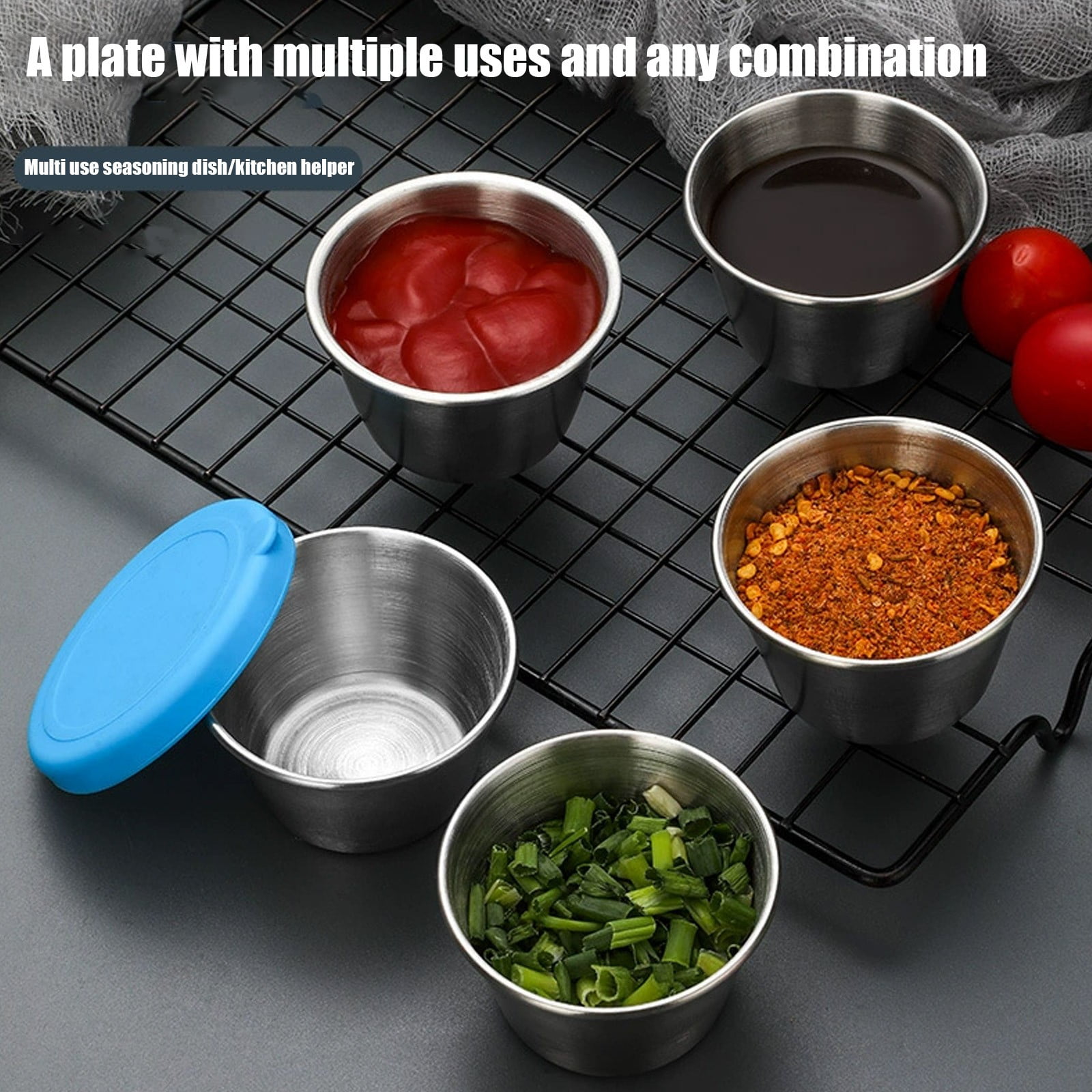 Salade En Acier Inoxydable Bol Cuisine Côtés Plat Sauce Seasoing Plat... Couvercles en silicone colorés / Format portable : Ces mini-récipients à sauce en acier inoxydable sont fournis avec des couvercles en silicone de couleurs variées, permettant de distinguer facilement les différentes sauces. Chaque récipient a une contenance de 50 ml, est léger et facile à transporter, idéal pour l'école, le travail, les voyages ou les pique-niques. Leur format... Bol A Sauce Avec Bec Verseur 10cl 8 X 4.9cm PEZEEU Bols à Sauce/Snack Petits Bols Coupelles à Sauce en Acier