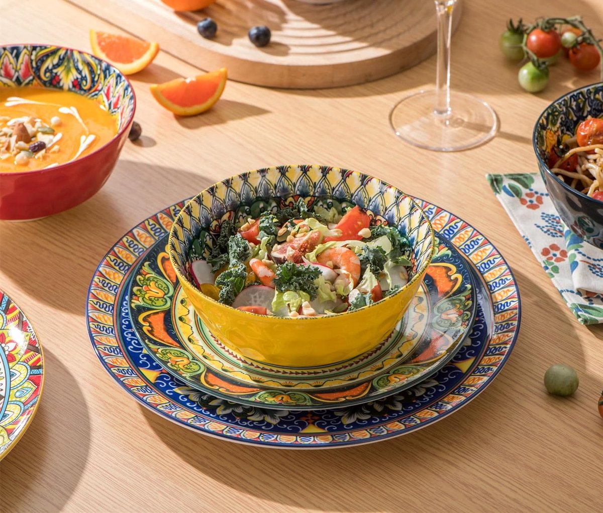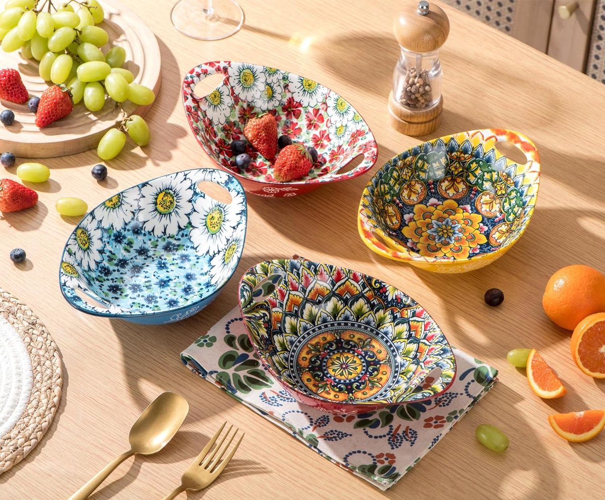 ** Céramique forgée à haute température, avec émail sélectionné, ronde et lisse, facile à nettoyer. Couverts en céramique de style bohème, plats CeleTis luxueux et créatifs peints à la main pour Céramique forgée à haute température avec émail sélectionné, ronde et lisse, facile à nettoyer. Bol Salade Petit Déjeuner Xfeyaqlo 6 Pieces Bol Soupe 280ml Bol Petit Dejeuner Boheme Ceramique, Convient Pour Les Snacks, Les Tapas, Les Plats D'Accompagnement, Le Riz, Les Desserts (6 Pcs 1 Set Bol Micro-ondes Four Safe ** C'est un bon choix de cadeau, un beau motif, avec une nourriture saine, offrez-le à votre famille, ajoutez du plaisir à la vie. ** Résistant aux températures élevées, il peut être utilisé au micro-ondes, au four et pour d'autres types de chauffage direct. Bol Petit Dejeuner Ceraique - Bol Cuisine Porcelaine Design Coloré 300... C'est un bon choix de cadeau, un beau motif, avec des aliments sains, offrez-le à votre famille, ajoutez du plaisir à la vie. Chauffage : disponible pour le four, le four à micro-ondes Pour donner du style et de l'harmonie à votre table, vous pouvez choisir de jolis bols à déjeuner dans la même vaisselle que les assiettes et les tasses que vous avez à la maison ** La conception épaissie du fond du disque ne permet pas de se brûler les mains, mais protège également le bureau contre les brûlures. ** Poignée large et ronde, toucher délicat, épaississement anti-brûlure, facile à tenir. 600ml Grande capacité pour une utilisation quotidienne. ** Peut être utilisé pour la salade, les nouilles instantanées, les céréales, les snacks, les fruits, les snacks et autres assiettes à dîner. Le fond de l'assiette est épaissi, ce qui évite d'avoir les mains chaudes et protège le bureau contre les brûlures.
