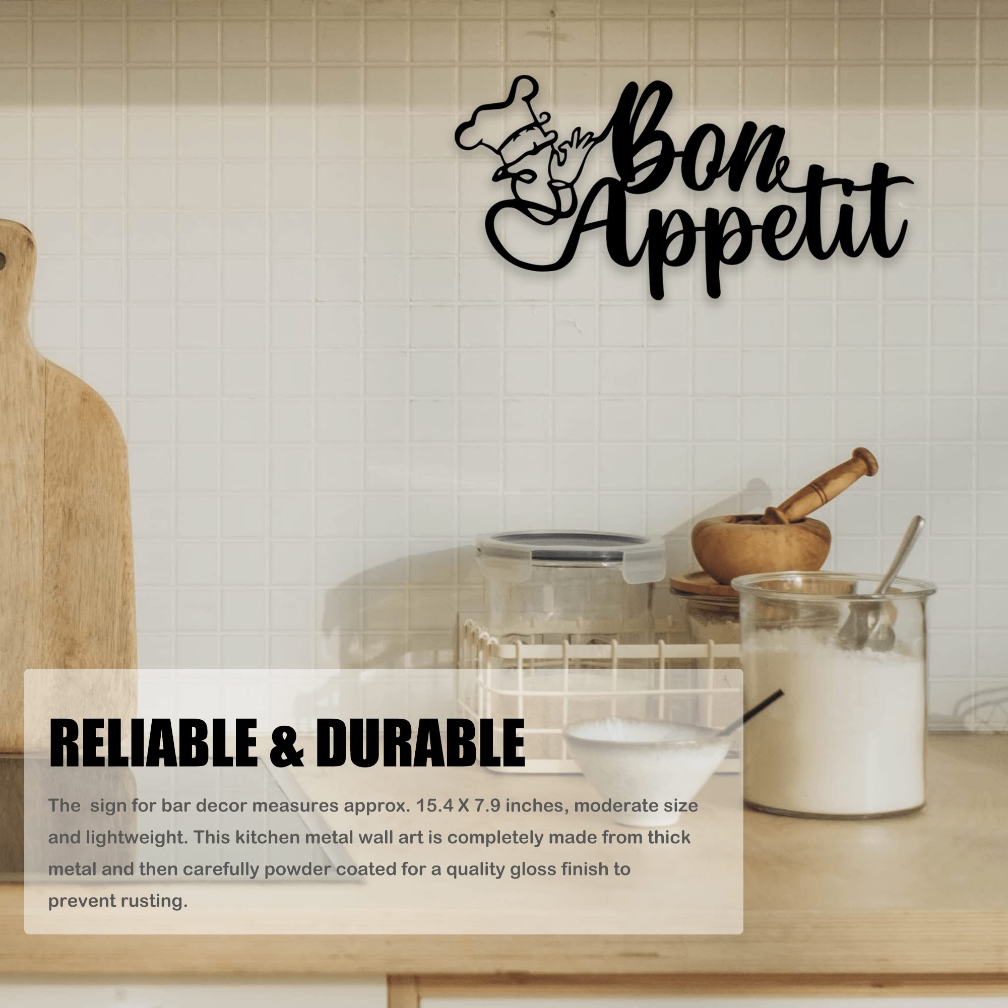 Acheter Français Bon Appetit Art Print Cuisine Décoration murale Cadeau de pendaison de crémaillère Ustensiles de cuisine Mur Art Photos Salle à manger Toile Peinture Plafonnier semi-encastré noir mat, lustre moderne à 4 lumières pour... Panneaux Muraux Décoration Murale Bon Appetit - Décoration Murale En Métal Décoration Murale Cuisine ✔ Décoration murale en métal Bonapetit : cette décoration murale de cuisine est entièrement fabriquée à partir d'acier épais et ensuite soigneusement revêtue de poudre pour une finition brillante de qualité pour éviter la rouille. Décoration murale en métal facile à accrocher : cette décoration en métal est livrée avec 2 trous, des paires de vis assorties et des chevilles murales en plastique, vous permettant de l'accrocher facilement. Décoration Murale En Métal Bon Appétit, Décoration Murale De Cuisine Noire 40x27 Cm Il peut être mis en mesa ou accroché au mur. Décoration murale métal thème... Design épuré et simple, parfait pour tout style de cuisine. ✔ Excellente décoration murale de cuisine : ajoutez ce panneau Bon appétit à votre décoration d'intérieur. Garantie : si vous avez des questions, n'hésitez pas à nous contacter via le centre de messagerie client. Superbe décoration de ferme ou pour une cuisine plus contemporaine, elle s'adaptera à l'un ou l'autre.