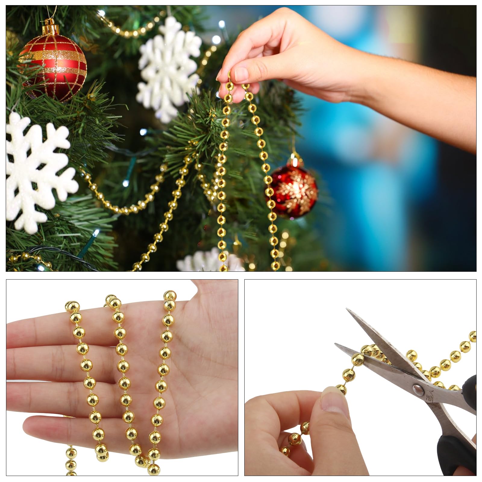 Guirlande de sapin de Noël de 30 m, perles artificielles pour Outre sur la table, cette guirlande de perles brillantes peut décorer le sapin de Noël mais aussi votre intérieur. Parmi toutes les fêtes de l'année, Noël est la plus somptueuse. Celle où l'on prend à cœur d'organiser un beau et bon repas entouré de sa famille ou d'amis proches Guirlande Dorée Miroir Obmwang Guirlande De Bonbons De Noël De 3 M - Rouge Et Blanc - Menthe Guirlande Perle Sapin Liste d'emballage : vous recevrez 30 m de ruban de perles d'arbre de Noël, le diamètre de la perle est de 6 mm, ce qui permet de répondre à vos besoins quotidiens de décoration et de bricolage Les perles sont espacées de 2 mm. Il peut être utilisé pendant une longue période Large utilisation : la guirlande de perles d'arbre de Noël est parfaite pour la décoration ainsi que pour les projets de bricolage faits à la main Facile à utiliser : le ruban de perles de décoration de Noël est un collier de perles entier qui peut être utilisé directement partout où vous souhaitez décorer. Il peut être utilisé pendant une longue période La guirlande de perles de Noël est très appropriée pour décorer et embellir les arbres de Noël, les murs, les portes, les cheminées, les tables, les clôtures, les guirlandes, les emballages cadeaux, etc Large utilisation : la guirlande de perles d'arbre de Noël est parfaite pour la décoration ainsi que pour les projets de bricolage faits à la main.
