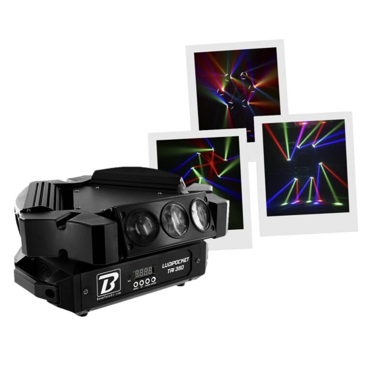 Parfait pour DJ mobile, club ou prestation live. Le Ludipocket 360 projette des faisceaux multicolores vifs en mouvement continu grâce à sa rotation PAN 360°. Il dispose également d’un strobe ajustable jusqu’à 13 Hz et d’un dimmer électronique 0–100 %, pour enrichir vos shows lumière sans complexité. Le Ludipocket 360 propose 4 modes d’utilisation : DMX (14 ou 45 canaux), Auto, Détection musicale ou Maître/Esclave. Contrôle individuel des LED Parfait pour créer une ambiance dynamique et immersive dans les clubs, scènes ou soirées DJ, même sans contrôleur externe. Projecteur Compact 3.65kg 100W BoomTone DJ LUDIPOCKET - Effets à LED Effet Lumière LED RGBW Pour DJ Lancez les rouleaux LED et profitez d’une rotation fluide à 360° et d’effets lumineux personnalisables. Rotation 360° fluide et continue Chaque rouleau LED peut être contrôlé indépendamment, offrant une personnalisation poussée des séquences lumineuses, que ce soit en défilement, en alternance ou en mode automatique. Placez l’appareil au sol ou sur une structure. Jeu de lumière Boomtone Dj Ludipocket 360 - Planet Sono Un effet Beam mobile, précis et facile à exploiter La consommation de 100 W permet une utilisation prolongée sans surchauffe. Installation rapide pour un effet lumineux dynamique et sans contrainte BoomTone DJ Ludipocket TRI 360 - Effets à LED Univers Sons Sa compacité permet une intégration facile dans tous les espaces., Branchez-le au secteur. Sélection du mode de contrôle Développé en France par BoomToneDJ, le Ludipocket 360 bénéficie d’un SAV local, d’une disponibilité immédiate, d’un manuel en français, et d’un contrôle qualité rigoureux pour vous garantir un produit fiable, performant et durable.