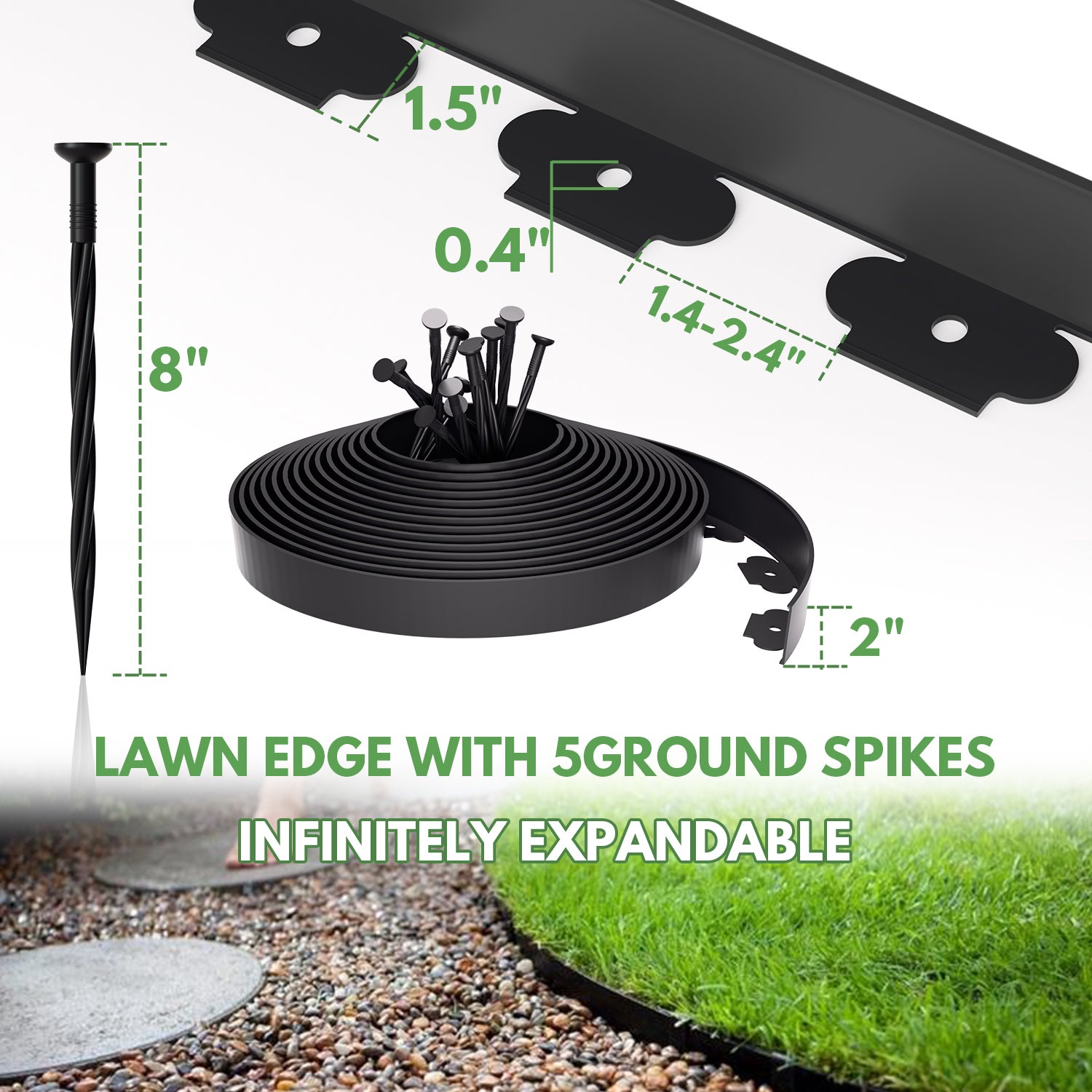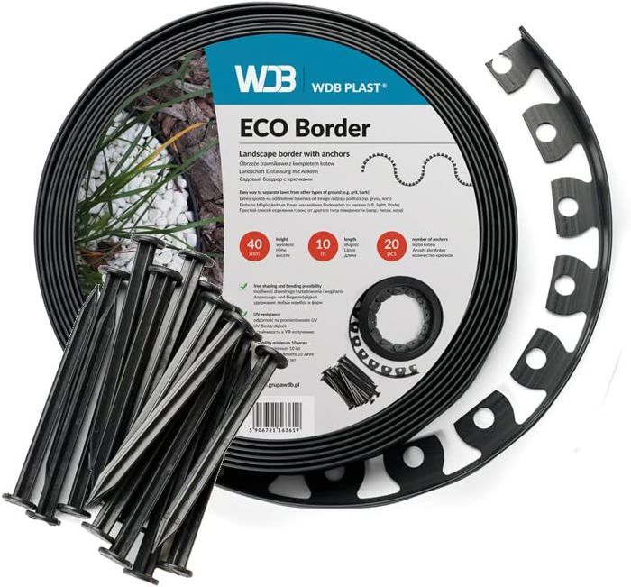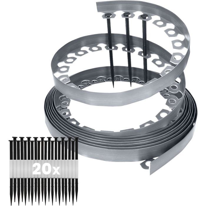 EINFEBEN 20m Bordure De Pelouse En Plastique, Flexible Bordure De Jardin Bordure De Gazon Decorative De Jardin Avec 60 Piquets Dancrage 85663184 Bordure Jardin Plastique Bordure De Jardin Flexible 20m Hauteur 12cm Bordure Souple Jardin Exterieur Fabriquée à partir de PE recyclé résistant aux intempéries, cette bordure de jardin de 10 mètres est conçue pour résister aux conditions météorologiques extrêmes telles que le soleil et le gel, ainsi qu'à l'usure due à l'utilisation de coupe-bordures et de tondeuses rotatives Durabilité Renforcée en ABS Résistant:Fabriqués en plastique ABS haute résistance, ces piquets de bordure résistent aux UV, aux déformations et aux conditions climatiques extrêmes, assurant un maintien durable pour vos aménagements paysagers. El juego incluye veinte piezas de borde de jardín acompañadas de veinte estacas de plástico de 7.8 pulgadas, proporcionando una longitud de cobertura total de... Polyvalence Jardin et Extérieur:Idéal pour délimiter des espaces, sécuriser des bâches ou stabiliser des structures légères, ce kit de piquets multifonction répond aux besoins des jardiniers amateurs comme des professionnels. Design Triangulaire pour Stabilité Maximale:La forme triangulaire anti-glissement facilite la pénétration dans les sols durs ou meubles, tandis que l’encoche supérieure permet de fixer des cordes pour ancrer solidement bâches ou bordures.