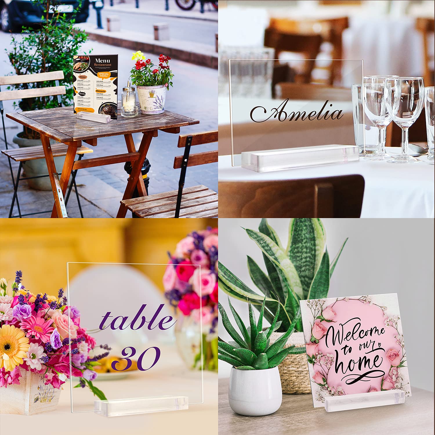 S'il se salit pendant l'utilisation, il suffit de l'essuyer délicatement avec un chiffon humide ou de le rincer sous l'eau courante. Porte-cartes Acrylique Transparent Porte-affiche En Acrylique Avec Bordures Dorées, Présentoir De Cadre Photo, Porte-papier Transparent, Supports De Menu De Table Pour Mariage, Bureau, Restaurant Porte Menu Mariage Insérez des cartes de taille ou de poids appropriés pour éviter qu'elles ne basculent. Du choix des matériaux nobles jusqu’aux finitions raffinées, nous vous accompagnons dans la création de porte-menus et de supports de carte de restaurant à la hauteur de votre image Les support menu présentent un design transparent qui s'harmonise avec n'importe quel thème ou style de décoration. Grande Stabilité: La fente du support menu mariage mesure 3 × 5 mm, ce qui permet d'y glisser facilement les cartes. Porte-menu acrylique personnalisé : Mettez en valeur vos offres Cette quantité suffisante répondra à vos besoins d'affichage, pouvant accueillir diverses cartes, étiquettes, photos et plus encore. Ce matériau robuste résiste à la casse, à la rouille, au jaunissement et à la déformation, ce qui rend les support photo carte porte particulièrement adaptés à une utilisation à long terme. Le support carte pour cartes de mariage présente une base élargie qui l'empêche de basculer même lorsqu'il contient des cartes plus épaisses, tout en occupant un espace minimal. Porte menu en acrylique 3 faces 1/3 A4 Quantité et Dimensions: Vous recevrez sept porte menu mariage, mesurant chacun 10 × 3 × 1 cm. Facile à Nettoyer: La surface lisse du porte carte mariage résiste à la poussière et aux taches, ce qui le rend facile à entretenir.