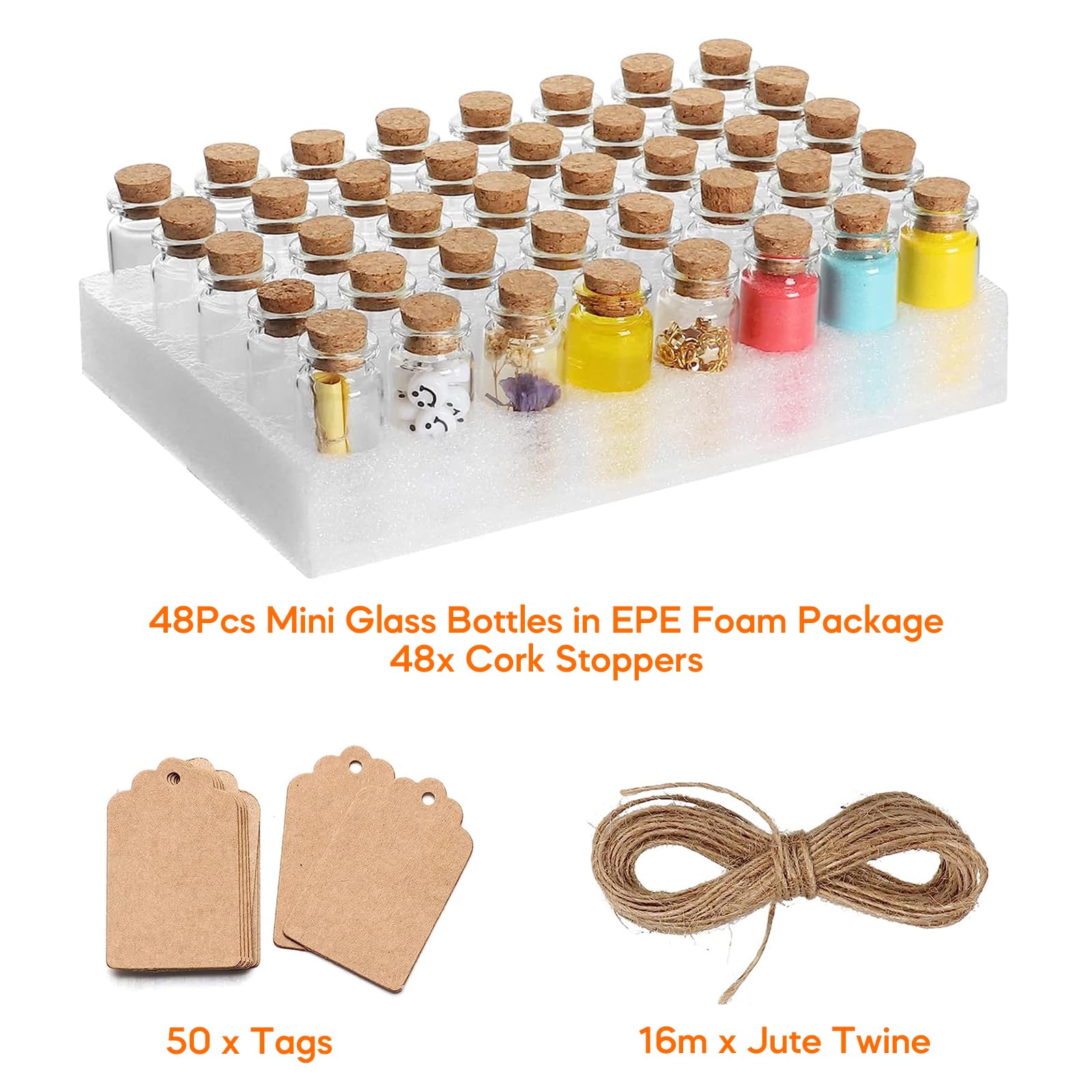 Bocaux Verre Hermétique Décoration HOMSFOU 48pièces Bouteilles Verre Mini Avec Bouchons Liège Lot De Petites Bouteilles Transparentes Pour Rangement Et Loisirs Créatifs Récipient Huiles Essentielles Thé Fleurs Ce lot de mini bouteille est id al pour les liqueurs ou les jus, mais aussi comme bouteille en verre d corative. Fiole mariage lavable au lave-vaisselle, le syst me de fermeture m tallique, quant lui, peut tre lav la main. Contenu de la bo te petits flacons en verre avec fermeture bouchon m canique VILLCASE Lot de 48 carafes en verre avec couvercles et fioles Bouchons hermétiques : le récipient en verre avec couvercle en liège utilise des bouchons en liège en bois pour une fermeture hermétique, préservant la fraîcheur et faisant de ces bocaux avec bouchons en liège un choix pour toute utilisation, bocaux à sorts, mini bouteilles avec liège Ces 30 petites fioles en verre (2,5 x 2 cm) avec bouchon en liège sont idéales pour tes projets DIY. Tu peux y mettre des petits messages, des paillettes, des... Options d'utilisation polyvalentes : ces mini pots avec couvercles servent de bouteilles de sable décoratives pour les mariages, de petites bouteilles en verre portables pour les voyages ou de mini bouteilles à souhaits transparentes pour des projets de décoration DIY uniques, de petites bouteilles en verre , de mini bouteilles à souhaits de noël en verre Mini bouteilles avec bouchon en liège - Bouchon en liège en bois naturel : chaque bouteille en verre avec couvercle est dotée d'un bouchon en liège en bois qui scelle hermétiquement et protège le contenu, garantissant la fraîcheur et minimisant l'exposition à l'air pour les besoins de stockage à long terme des bocaux à sorts -Couleur : petites bouteilles en verre bouchonnées transparentes -Taille : 3,00 x 2,20 x 2,20 cm/1,18 x 0,86 x 0,86 pouces mini bouteille à vœux transparente - & distribution : la conception à ouverture droite de ces petits bocaux avec couvercles en liège permet un remplissage, un versement et une mesure précise sans effort, pour les échantillons de laboratoire ou les fournitures de bricolage mini flacons avec bouchons en liègeDescription des marchandises petites bouteilles avec couvercles La bouche droite permet une décoration DIY facile, et la conception de la bouteille à souhaits ajoute une touche romantique pour les cadeaux de fête de mariage ou l'artisanat de vacances. Verre robuste : ces bouteilles en verre avec bouchon sont fabriquées à partir d'un matériau en verre sélectionné, offrant une durabilité et une sécurité accrues pour des thés aux fleurs ou des huiles dans des mini bouteilles de vœux de noël en verre, des petites bouteilles en verre, des fournitures de bricolage Contenu du forfait 48 x mini bouteilles en verre avec bouchon en liègeCaractéristiques -Informations sur le produit : bouteille en verre -Matériau : verre, liège, mini bouteilles de vœux de Noël en verre - Haute durabilité du verre : fabriquées en verre, ces bouteilles de potion avec bouchons sont résistantes à la chaleur et aux , ce qui les rend idéales pour les huiles essentielles et les thés aux fleurs sans perte de saveur.