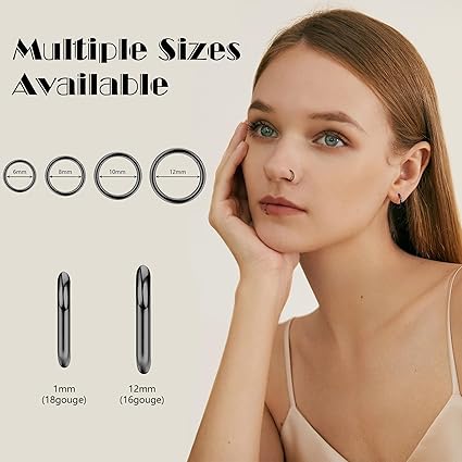 Ajustement multi-positions : le piercing Lantine pour septum s'adapte non seulement au nez, mais aussi au trou de l'oreille, au conque, au tragus et à l'oreille... Le fil d'aluminium enroulé autour de l'anneau extérieur est disponible dans les couleurs violet, or, vert, noir, rouge et or rose, qui sont légers et brillants et assurent confort et esthétique. Design sûr : le piercing Daith a été conçu pour la sécurité de l'utilisateur, il est facile à fermer et à ouvrir, n'est pas tranchant et garantit un port sûr et confortable. Anneau Septum 16G Noir Acier Inoxydable Bjoux Septum 16G Anneau Clcker Pour Septum Boucles D'orelles Dath En Acer Chrurgcal 316L Lot De 2 Piercings Septum Noir Et Acier Pour Cartilage Deux tailles de diamètre intérieur : 8 mm et 10 mm (0,39 pouces), et une épaisseur : 16 g (1,2 mm) qui s'adaptent aux différents besoins des utilisateurs. Chaque commande comprend un anneau de piercing lotus pour septum et une pochette en velours.Épaisseur : 16 g (1,2 mm), diamètre intérieur : 8 mm (0,31 pouce)/10 mm (0,39 pouces).Fabriqué en acier inoxydable de haute qualité, sans plomb, sans nickel et sans cadmium, doux pour la peau.Facile à fermer et à ouvrir, non tranchant, pour un... Piercing de nez pour cartilage d'oreille, anneau de nez, anneau cartilage, couleur acier inoxydable, 1,2 mm, calibre 16, argenté Bijou Corps Titane G23 Anneaux Nez Titane DIAMDAY - 16G/18G/20G - Hypoallergénique - Clic Fermeture - 8mm/10mm - Lot 2 Bijou Corps G23