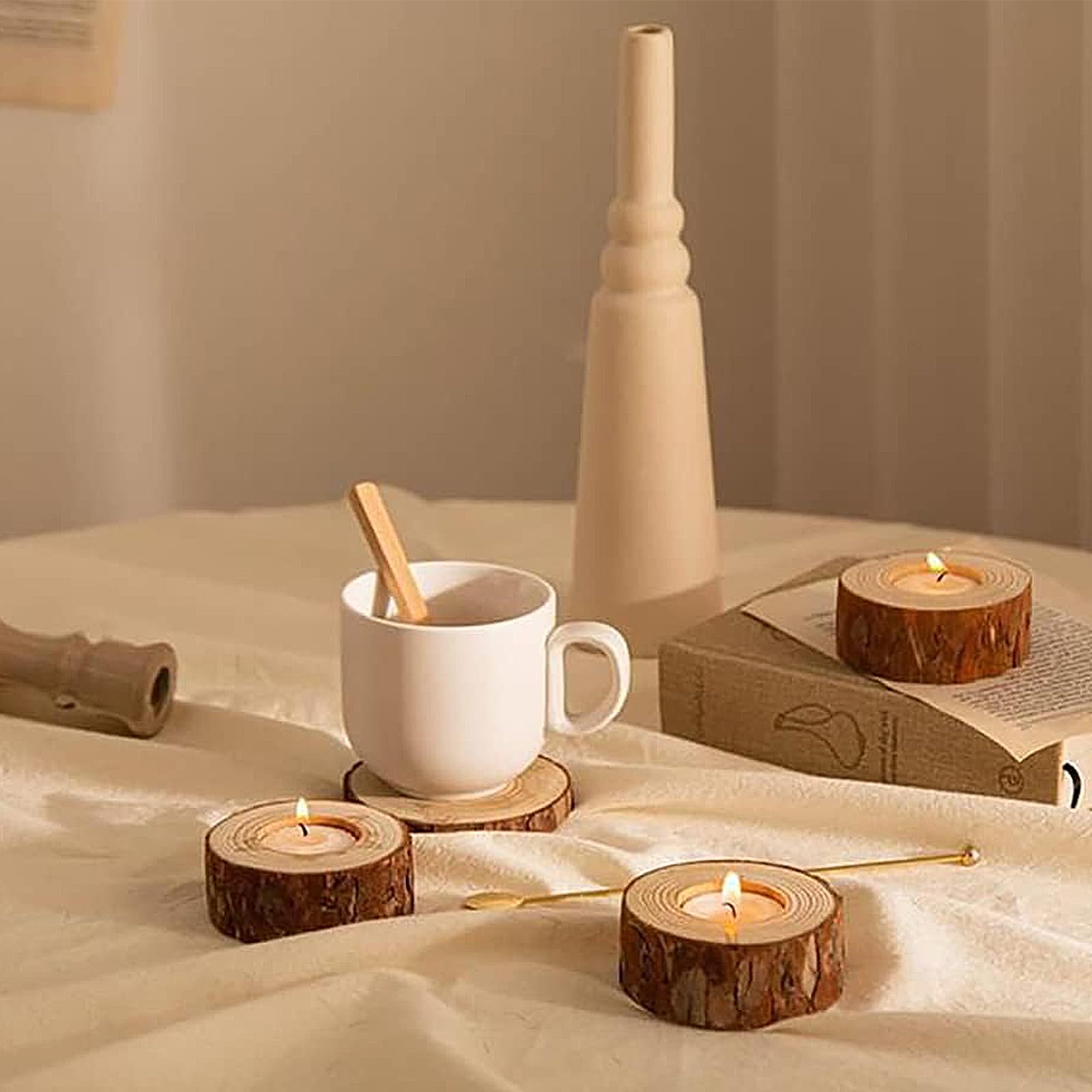 Lot De 10 Bougeoirs Polyvalents Pour Table De Dîner, Décoration D... Dimensions parfaites pour les bougies chauffe-plat : Avec des dimensions extérieures d’environ 5 à 7 cm et une hauteur de 2,5 cm, ces bougeoirs s’adaptent parfaitement à toutes les tables. Le trou intérieur de 4 cm de diamètre et 1 cm de profondeur est idéal pour toutes les bougies chauffe-plat standard. Photophore Bois Lot De 12 Bougeoirs En Bois Pour Décoration De Table Noël Bougeoirs Bois Naturel Rondins Pour toutes les occasions : Que ce soit comme décoration de table pour un mariage, un anniversaire ou Noël, comme décoration automnale naturelle pour votre maison, ou pour une ambiance chalet lors de vos fêtes de jardin ou soirées Oktoberfest. Il est composé de jolies écorces de bois avec un bougeoir en verre au centre. Le bougeoir mesure environ 7.5 cm de hauteur et 8.5 cm de diamètre. Disposez cette... Ambiance rustique authentique : Chaque bougeoir est une pièce unique en bois véritable avec son écorce naturelle préservée, créant une atmosphère chaleureuse et accueillante, idéale pour un style maison de campagne ou comme accent naturel dans tout intérieur moderne. Bougeoirs rustiques en rondins : la touche nature de dernière minute