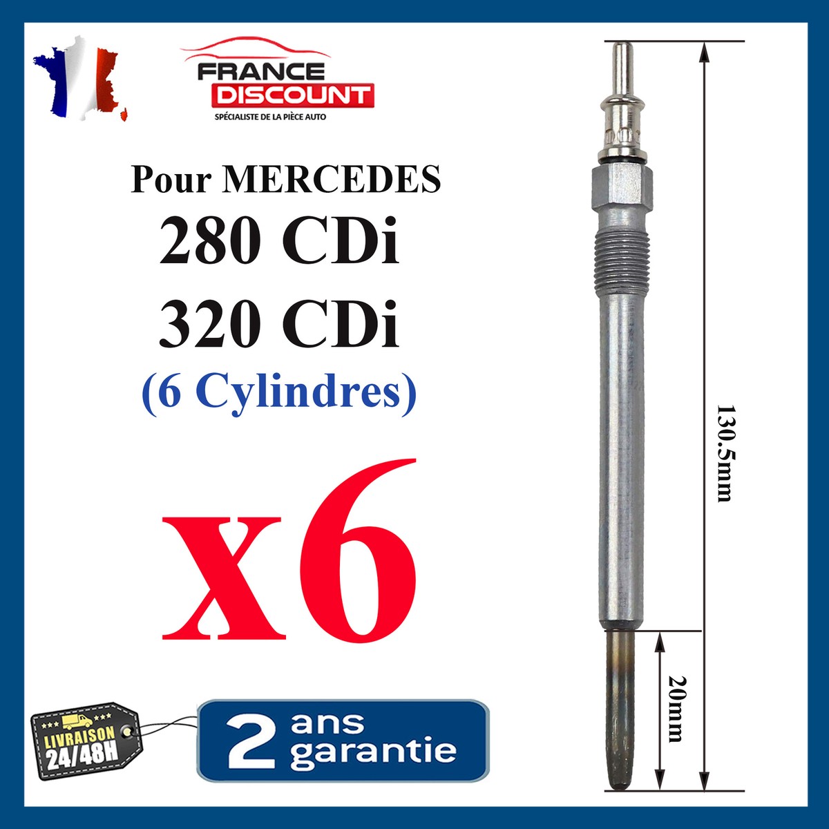 6 Bougie de préchauffage MERCEDES Classe E 280 E280 Cdi 177 320 E320 V6 197/204 ; BERU : 0 100 226 379, 0100226379, GN003 ; BOSCH : 0250202029, 0 250 202 029... Merci de bien vérifier la référence de vos bougies et de bien comparer votre modèle avec nos photos. Bougies de préchauffage neuves de fabrication Européenne de qualité équivalente à l'origine., Garantie 2 ans., Vendeur français Lot De 6) Bougie De Préchauffage Classe E 280 E280 Cdi 177 Bougies Préchauffage Mercedes Références Équivalentes : 0 100 226 379, 0100226379, GN003, 0250202029, 0 250 202 029, GLP008, GLP022, 0 250 202 141, 0 250 202 142, 0250202141, 0250202142, CH218, HDS377, DG117, DG-117, 0911101142, F74192, 41206Z, LP055, UC17A, 062900012304, MGP0009, BP708, 6461, 6346, Y-745U, Y745U, RP8374, 345121 Extracteur de bougies de préchauffage pour moteur CDI (LOT de 6) BOUGIE DE PRÉCHAUFFAGE POUR Classe E (W210/W211) E280 Cdi 177ch, E320 V6 CDi 197/204ch & Classe S (W220) S320 CDI V6 (6 CYLINDRES) DIESEL (VOIR AFFECTATIONS VÉHICULES CI-DESSOUS) Bougie De Préchauffage MERCEDES-BENZ Classe E 211 Berline E 280 3 2 Cdi 177cv Boite Auto 243 5510 0 Gt