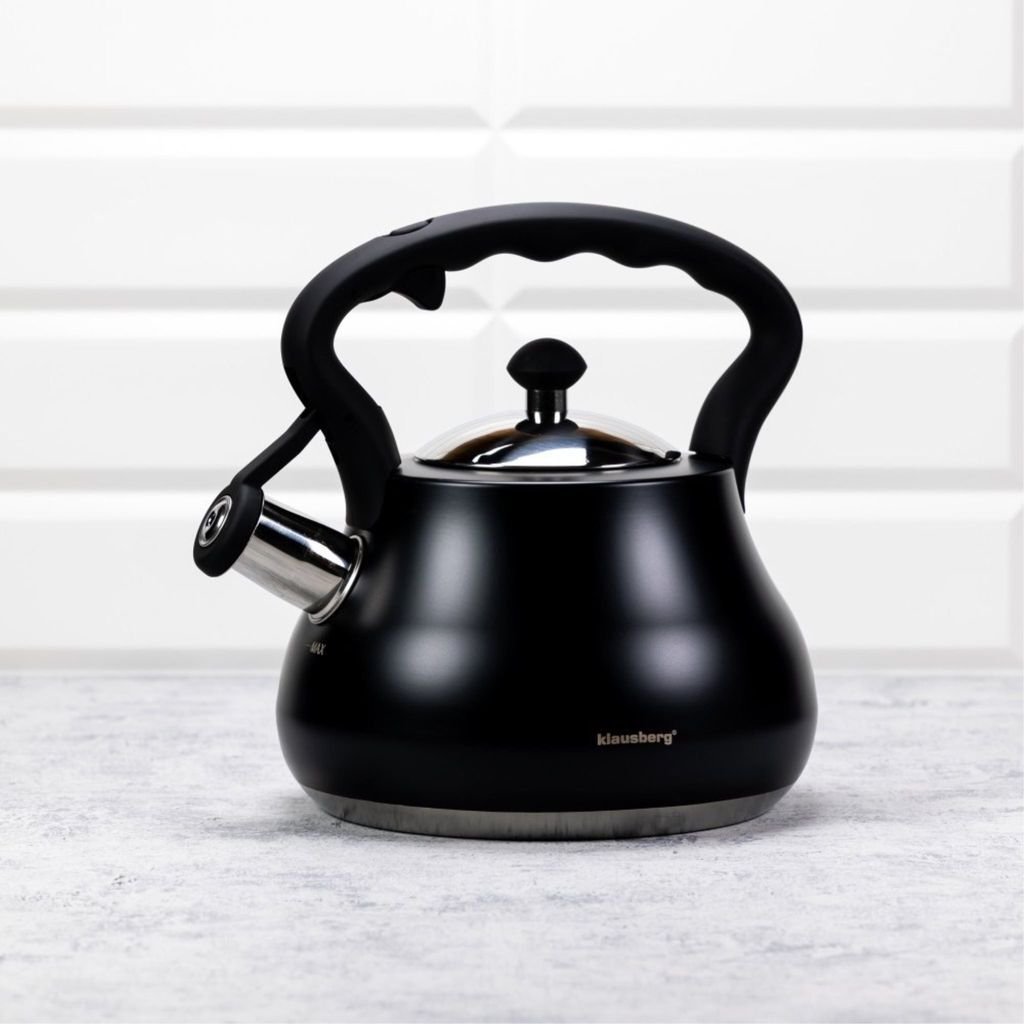 Bouilloire Noir Mat 2,5L - Compagnie Anglaise des Thés Bouilloire Sifflet Inox Klausberg Bouilloire En Acier Magic Change 3,0l KB7074 Bouilloire Gaz Description générale Bouilloire siffleur Klausberg de 2 L en acier inoxydable de haute qualité, peinte en noir mat. Son design moderne et sa fonctionnalité en font un accessoire indispensable pour votre cuisine. Spécifications techniques Capacité : 2 L Matériau : Acier inoxydable Couleur : Noir mat Type de sifflet : Pivotant Fond : Parfaitement plat, adapté aux plaques à induction... Czajnik stalowy 2L wykonany z wysokiej jakości stali nierdzewnej lakierowanej na kolor czarny matowy. Bouilloire à flûte Bouilloire avec sifflet Induction acier inoxydable KLAUSBERG.Fabriquée en acier inoxydable laqué de haute qualité.Peinture légèrement mate.Poignée recouverte de silicone (imitation bois).La poignée qui ne chauffe pas.Le sifflet intégré... - Wygodny przycisk do otwierania gwizdka, zapobiega oparzeniom. Cechy: - Wyposażony w odchylany gwizdek sygnalizujący zagotowanie wody - Idealnie płaskie dno dedykowane do płyt indukcyjnych - Nienagrzewająca się rączka - Nowoczesny kształt i wygląd.