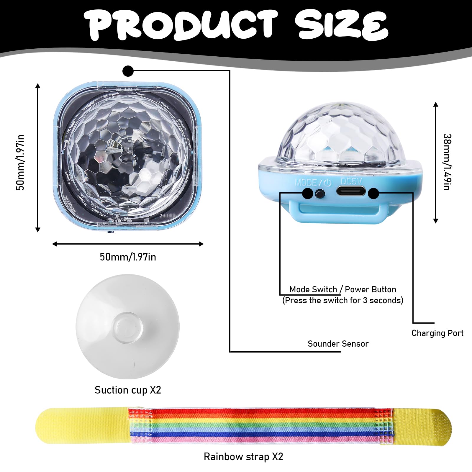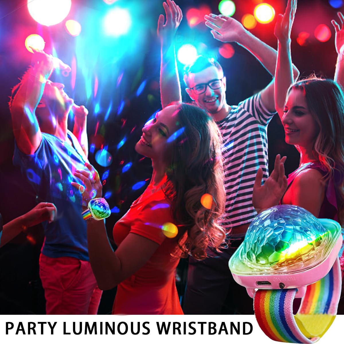 Bracelet Boule Disco LED Guirlandes Lumineuses à LED De Boule à Bulle 100 Ampoules, Chaînes De Lumière Décoration Pour Déco Ambiance Soirée DJ Sûr Mélange De La Musique Dans La Discothèque Fraîche. Concept De Pointe. Feux Rouges... Mini Crystal Magic - Mini boule Disco à lumière LED, projecteur Laser 【Design rechargeable】Bracelet Boule Disco Équipé d'un câble de charge USB, la boule disco lumineuse dure plus de 4 heures d'autonomie après seulement 30 minutes de charge. Guirlandes Lumineuses à LED de Boule à Bulle 100 Ampoules, Chaînes de Lumière Décoration pour... Profitez d'une utilisation sans fil pour plus de commodité, ce qui le rend idéal pour les déplacements ou une utilisation prolongée lors d'événements 【Bracelet avec ventouse】Vous pouvez porter la Montres Disco Lumineuses à LED en bracelet, ou utiliser la ventouse pour fixer la veilleuse sur une surface lisse, comme une vitre de voiture ou une chambre. 【Portable】Cette Lumière boule disco est mini et légère et peut être transportée dans votre poche ou votre sac. 【5 Modes】Bracelet Boule Disco Appuyez sur le bouton pour basculer entre 5 modes, y compris la commande vocale, le changement progressif, le saut, le changement d'impulsion et le clignotement.