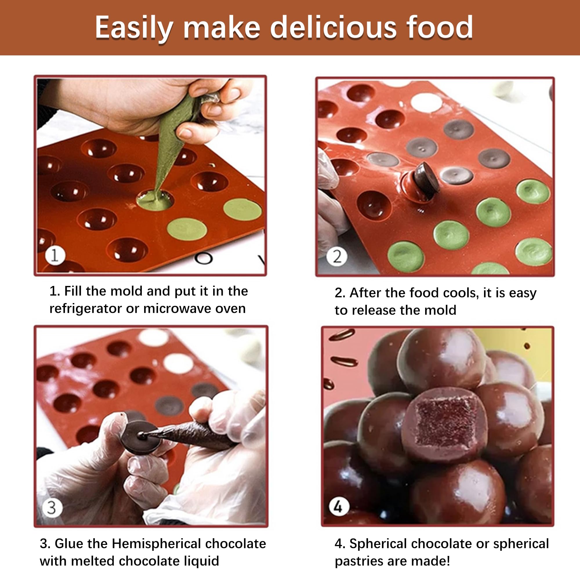 Moule Dome Silicone 4 Pièces Moule Sphere Silicone, Moule Demi Sphere Moule Boule Chocolat Moule Silicone Demi Sphere Petit Moule En Silicone Semi - Sh - Maison Moule Silicone Rond Baxcdyswe 4 Pièces oule Dei Sphere Silicone, 6 Trous oule en oule Sphère Silicone Patisserie Rond pour ousse, Boule Chocolat Chaud... et lave-vaisselle, vous permettant de l'utiliser en toute tranquillité d'esprit chaque moule dispose de 24 emplacements de placement semi-circulaires, en quantité suffisante pour répondre à vos besoins de production de masse, vous permettant de créer des designs à volonté Facile à Utiliser:Ll suffit de tourner et de pousser doucement pour garantir que le chocolat et les autres aliments peuvent être facilement démoulés. il peut être utilisé dans une variété d'environnements de cuisine tels que les fours à micro-ondes, les réfrigérateurs. il moule demi sphere silicone peut être restauré à son état d'origine immédiatement après le pliage. l'opération est simple, ce qui rend votre processus de fabrication du chocolat plus fluide et vous permet de profiter du plaisir de préparer de délicieux plats non seulement il se nettoie facilement avec de l'eau chaude savonneuse, mais il passe également au lave-vaisselle, au four, au congélateur, au réfrigérateur et au micro-ondes Moule Sphère Silicone pour Entremets 3D 55mm