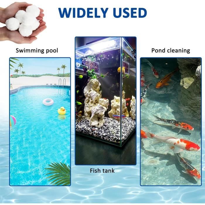 Haute capacité d'adsorption, haute perméabilité à l'eau, plus léger. Accessoires Filtres Et Pompes De Piscines Et Bains à Remous Boule Coton Piscine UISEBRT Balles Filtrantes Pour Piscine - 1400 G - Pour Système De Balle Coton Piscine Desherbant Total Puissant Effet de filtration significatif - Une nouvelle génération de balles filtrantes a une vitesse de filtration plus rapide et une capacité d'adsorption plus élevée que les moyens filtrants classiques Caractéristiques techniques : Couleur : blanc Matériau : 100 % polyéthylène., Diamètre : 5-6 cm., Poids : 700 g/1400 g. 1400 g : 2 balles filtrantes de 700 g., Attention : 1., Si nécessaire, il suffit de laver avec une petite quantité de liquide de lavage à 30 °C. 100 % polyéthylène et durable – Les balles filtrantes sont en 100 % polyéthylène, matériau léger, haute perméabilité et longue durée de vie, le lavage n'a pas besoin d'être répété Balle De Sable Filtrante LARS360 De 1400 G Pour Pompe De Piscine, Pour Il est adapté pour la filtration des filtres, des fûts de filtration, des piscines, etc. Pas besoin de répéter le lavage (si nécessaire, il suffit de le laver avec une petite quantité de liquide de lavage à 30 °C). Caractéristiques : Léger et facile à utiliser, longue durée de vie. (1 paquet (0,7 kg) peut remplacer environ 25 kg de sable filtrant). Large gamme d'applications : la nouvelle génération de balles filtrantes est souvent utilisée dans différents systèmes de filtration à sable et convient également pour l'eau salée. Description du produit Balles filtrantes pour piscine - Couleur blanc - Mat riau 100 % poly thyl ne - Diam tre 50-60 mm - Poids 700 g 1400 g - 1 paquet (0,7 kg) peut remplacer environ 25 kg de sable filtrant Conseils sur les balles filtrantes de piscine 1. Si n cessaire, il suffit de laver avec une petite quantit de liquide de lavage 30 C. 2. Ne pas exposer la lumi re directe du soleil 100... UISEBRT Balles filtrantes pour piscine - 1400 g - Pour système de... Il peut également remplacer le sable filtrant. Convient pour tous les systèmes de filtration à sable. Pour piscine, pompe de filtration, aquarium, etc. Ces balles filtrantes sont idéales pour la filtration des piscines et des aquariums.